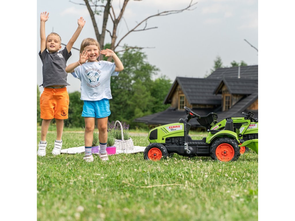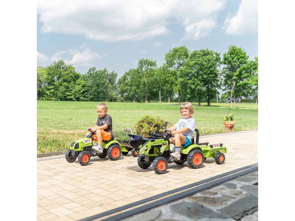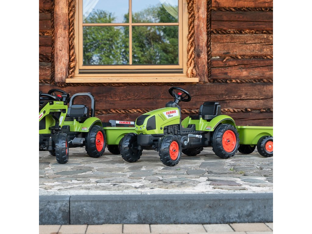 FALK Traktor Claas Zelený šlapací traktor s prívesom + klaksón od 2 rokov.