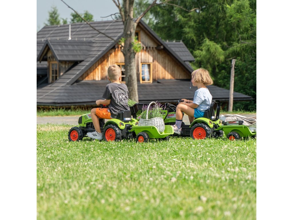 Pedálový traktor s prívesom CLAAS výrobca FALK je splneným snom mnohých mladých traktoristov.Starostlivo vytvorenés dôrazom na najmenší detail!Žiadny farmár by nimi nepohrdol. Vozidlovyrobené z najkvalitnejšieho plastu určené pre deti vod 2 rokov. Dĺžka súpravy 132 cm. Vozidlo je vybavenéodnímateľný príves s panelmi avolant s klaksónom. Kolesá traktora boli vyrobenévyrobené z vysokokvalitného plastu.