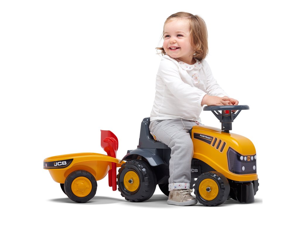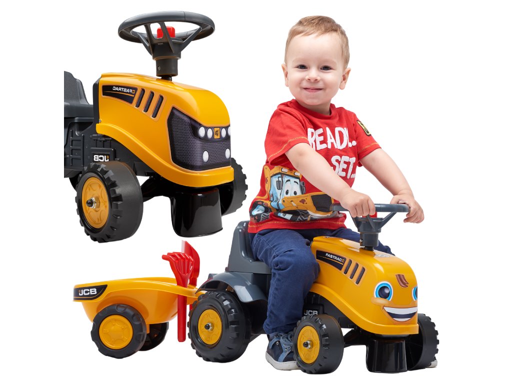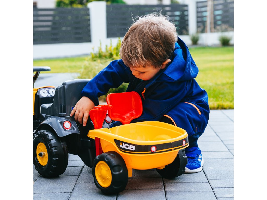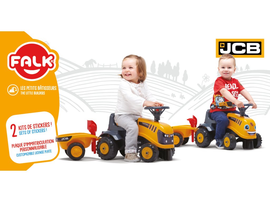 Traktor JCB s prívesom oranžový značky Falk je pre mnohých splneným snomvodič malého traktora. Starostlivo vytvorené, zpozornosť k najmenším detailom! Nieskutočný farmár by takýmto vozidlom nepohrdol. Vozidlo je vyrobené zmateriály najvyššej kvality určenépre deti vo veku 12 mesiacov a viac. Vozidlo je vybavenéodnímateľný príves s panelmi avolant s klaksónom.Kolesá traktor boli vyrobenévyrobené z vysokokvalitného plastu. Okrem traktora sa musíme hrať shrable a lopaty pre našich najmenších. Nálepky, ktoré sú súčasťou traktora, umožnia vášmu dieťaťu vybrať si vlastný jedinečný štýl.Smajlík alebo štandardná nálepka? Prekvapte všetkých a nalepte ho na prednú časť svojho vozidla.