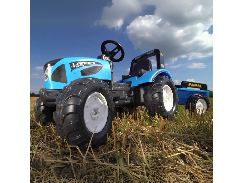 Landini pedálový traktor je výnimočné vozidlo renomovanej značkyFALKktorý je vernou kópiou modeluLandini Series 7. Tento pôsobivý modrý traktor bol navrhnutý s ohľadom na malých dobrodruhov všetkých vekových kategórií3 až 7 rokov. Vyrába sa 100% vo Francúzsku a vyznačuje sa pevným spracovaním, ktoré dokáže zvládnuť energiu "malých dobrodruhov". Je to ideálna platforma na hru vonku, ktorá spája fyzickú aktivitu s rozvojom vášne pre motorizmus a poľnohospodárstvo. Súprava je vybavenáodnímateľný príves s bočnými panelmi (ridelles), ktorý umožňuje prenášať piesok, lístie, hračky alebo iné poklady nájdené v záhrade. Pohodlie pri jazde zabezpečujetorzný volant s integrovanou húkačkouktorými môže malý vodič upozorniť okoloidúcich a dať o sebe vedieť. Traktor Landini je hračka, ktorá rastie spolu s vaším dieťaťom a ponúka nekonečné možnosti hry na farmára alebo staviteľa.