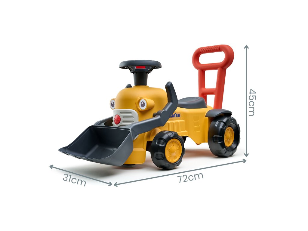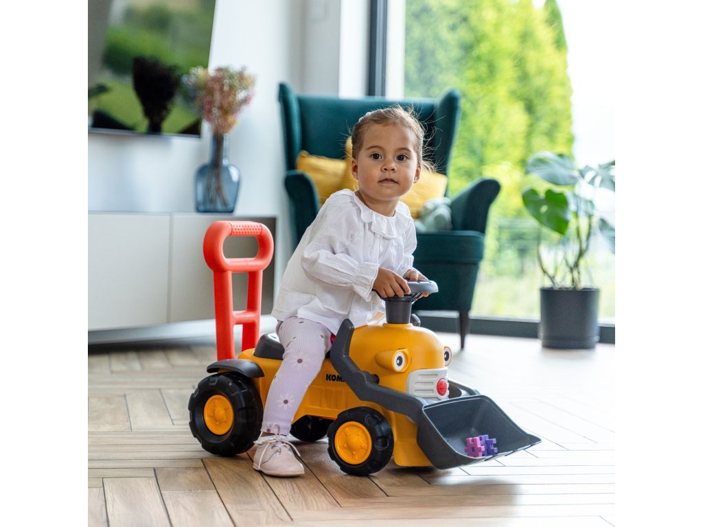 FALK predstavuje očarujúci traktorKomatsuktorý bol navrhnutý tak, aby sprevádzal deti od1 až 3 roky. Táto jedinečná jazda spája tradíciu a modernosť a vzdáva hold 75-ročným skúsenostiam značky. Vyrába sa v100% vo Francúzskus ohľadom na ekológiu pozostáva minimálne z90 % recyklovaného plastu. Vozidlo je vybavené plne funkčnýmpredné vedroktoré môže batoľa ovládať, avolant s klaksónomčo poskytuje veľa zábavy počas hry. Vďaka ergonomickémurúrka (základňa)hračka funguje aj akotlačiareň, ktoré podporujú dieťa pri prvých krokoch a rozvoji rovnováhy.