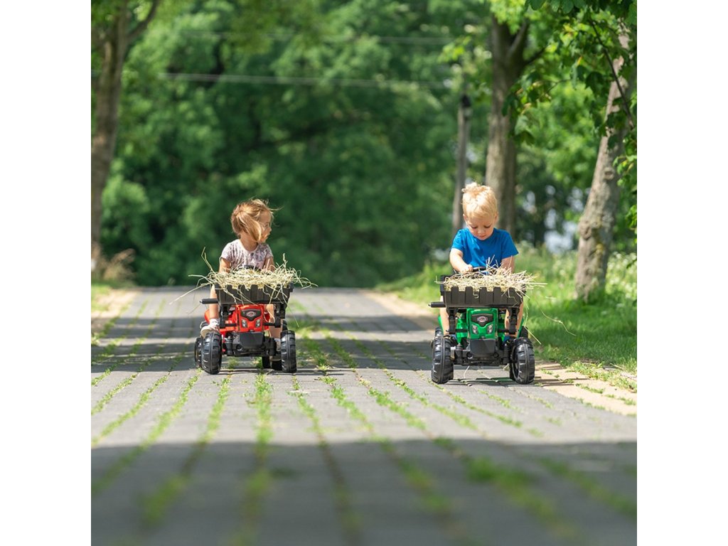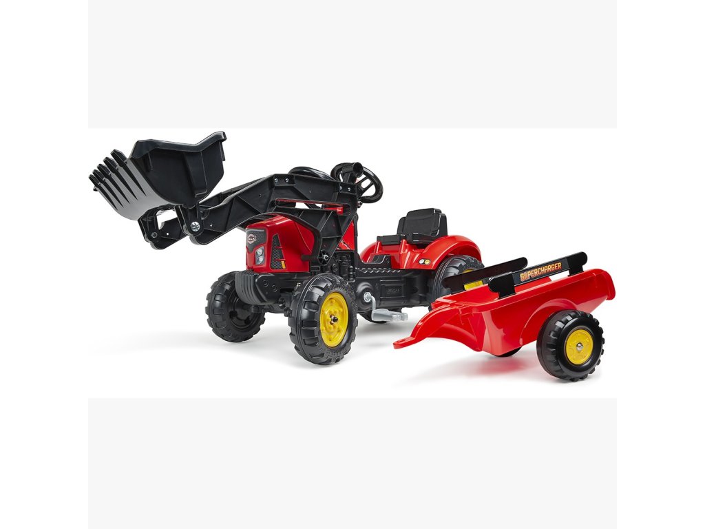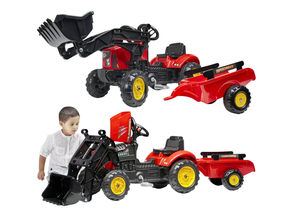 Traktor - rýpadlo s pedálmiSupercharger Červená od renomovanej značkyFALK je skvelá hračka pre malých nadšencov stavebných a poľnohospodárskych strojov. Je navrhnutá s dôrazom na detail a obsahujefunkčná, pohyblivá predná lyžica a veľkokapacitným prívesom, ktorý ľahko pojme piesok, lístie alebo kamene. Realistickú hru umocňujeotváranie kapoty, ktorý umožňuje prístup k "motoru" a volantu s klaksónom. Vyrobené výhradne vo Francúzsku, 40 % zrecyklovaný plast, zaručuje hodiny bezpečnej zábavy vonku.