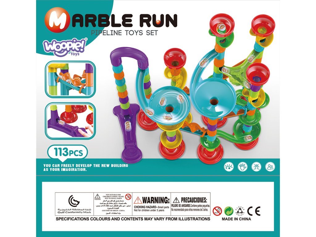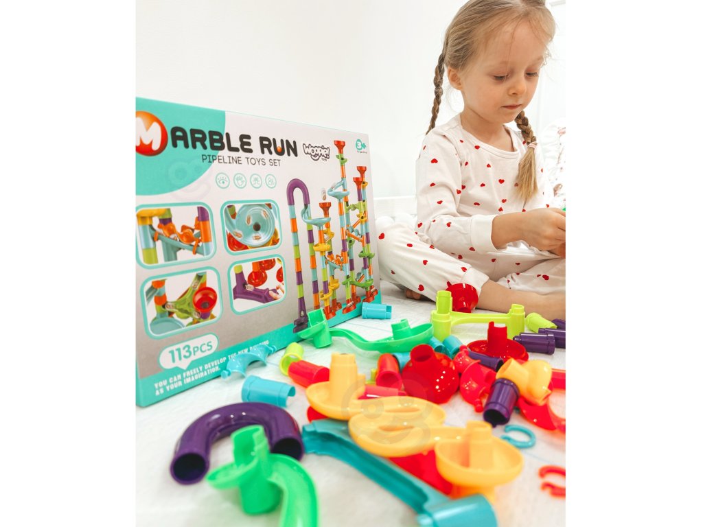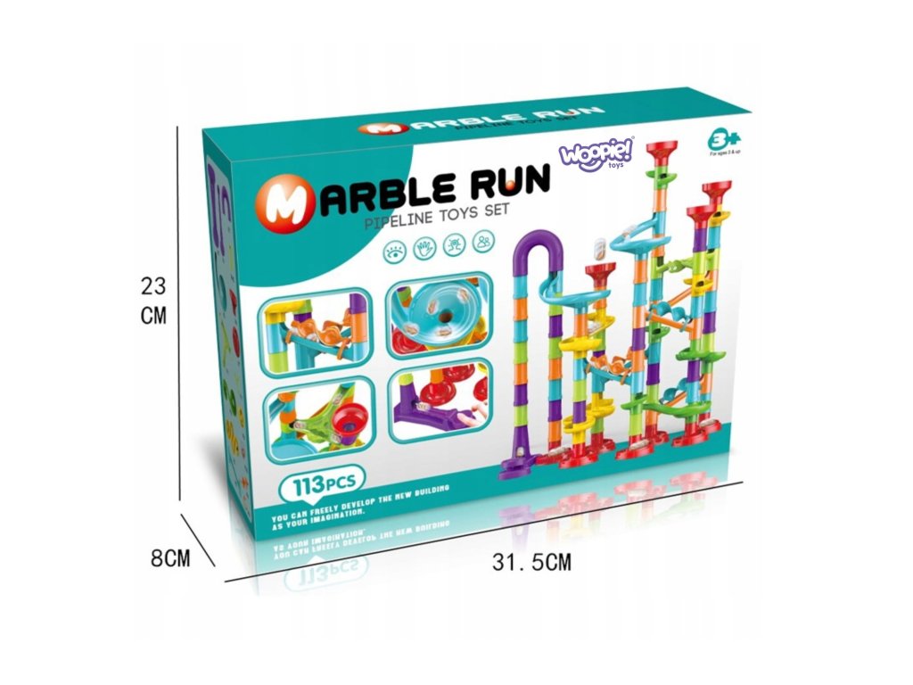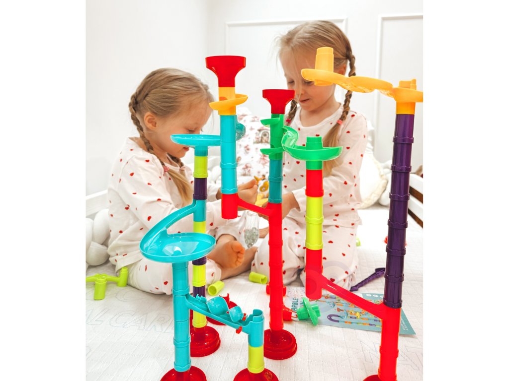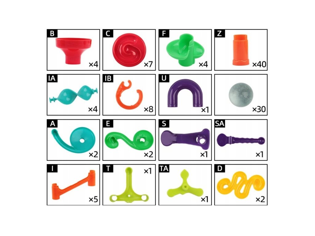 Vypustite guličky a sledujte, ako sa kotúľajú jedna za druhou. Sada obsahuje až 113 rôznych prvkov vrátane spúšťacieho zariadenia a loptičky na dráhu. Veľkosť dráhy je vhodná pre malé detské ruky a pomáha rozvíjať koordináciu očí a rúk.