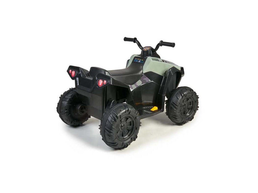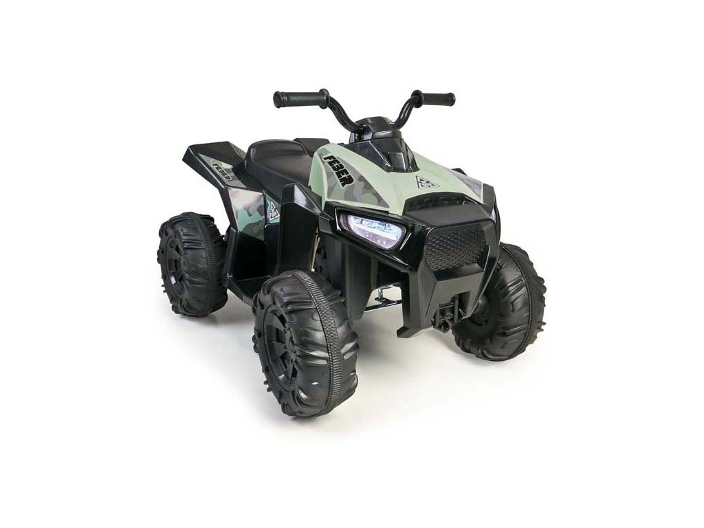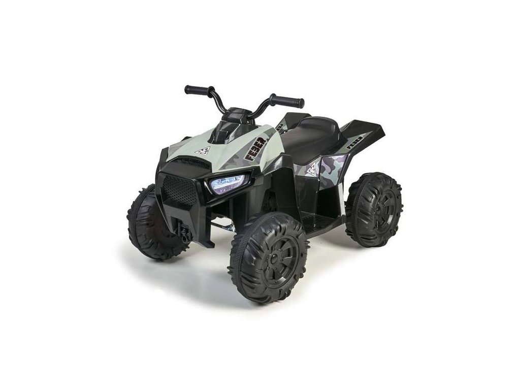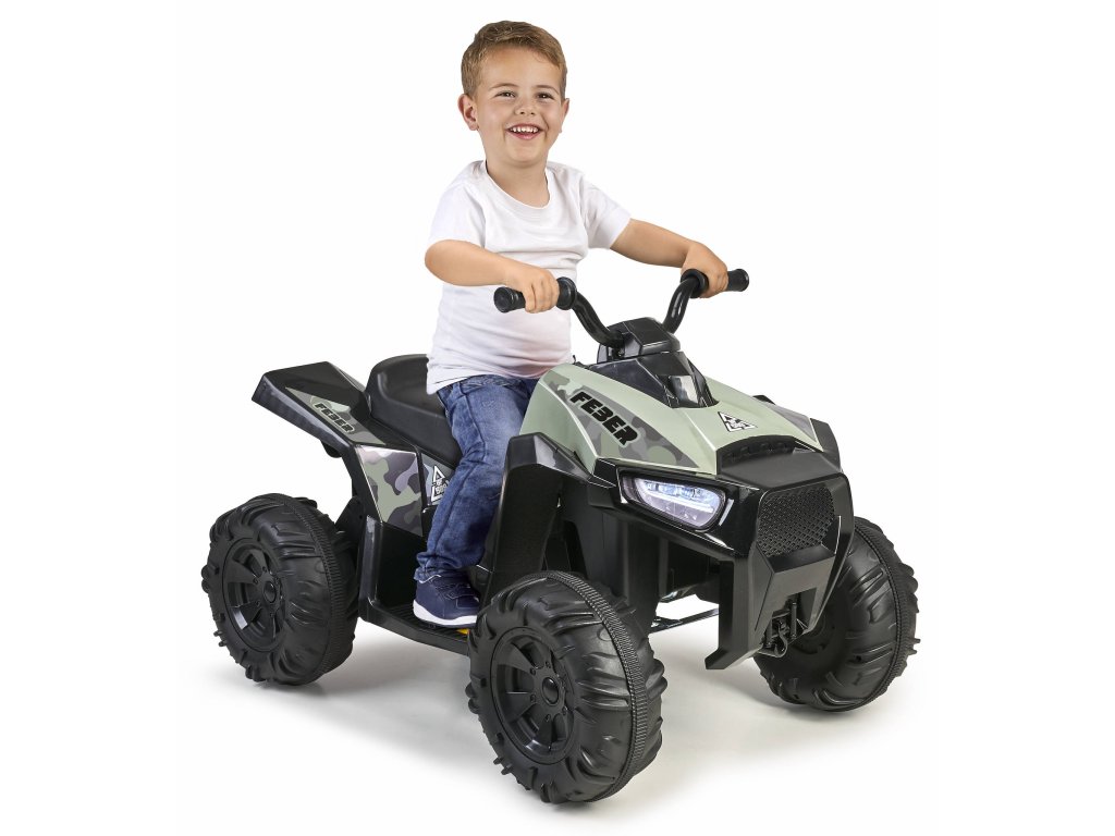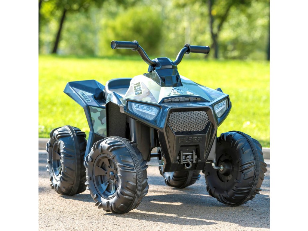 Úžasné elektrické vozidlo od renomovanej španielskej značky Feber. Farba moro dodáva terénny vzhľad. Štvorkolka je vybavená veľkými a robustnými kolesami, ktoré zabezpečia lepšiu priľnavosť a pri použití v interiéri sú tiché a nepoškodzujú podlahy. Je vybavená 12V batériou, prevodovkou na jazdu vpred a vzad a nožnou brzdou.