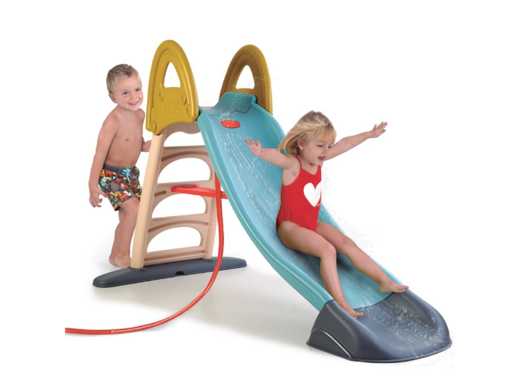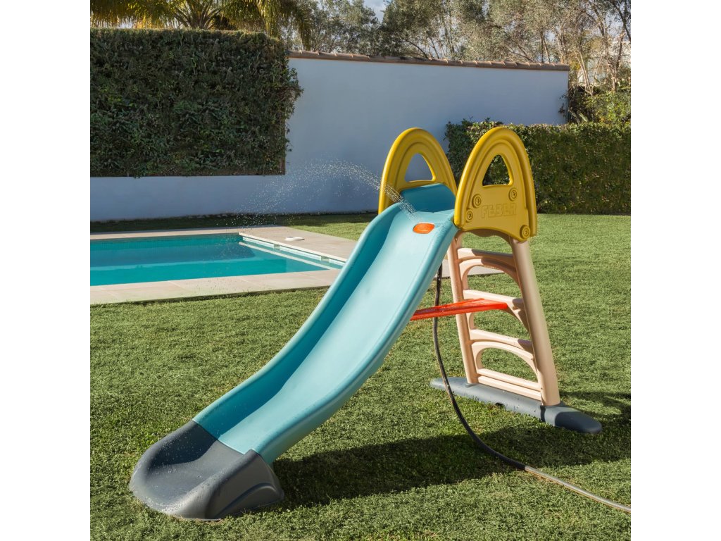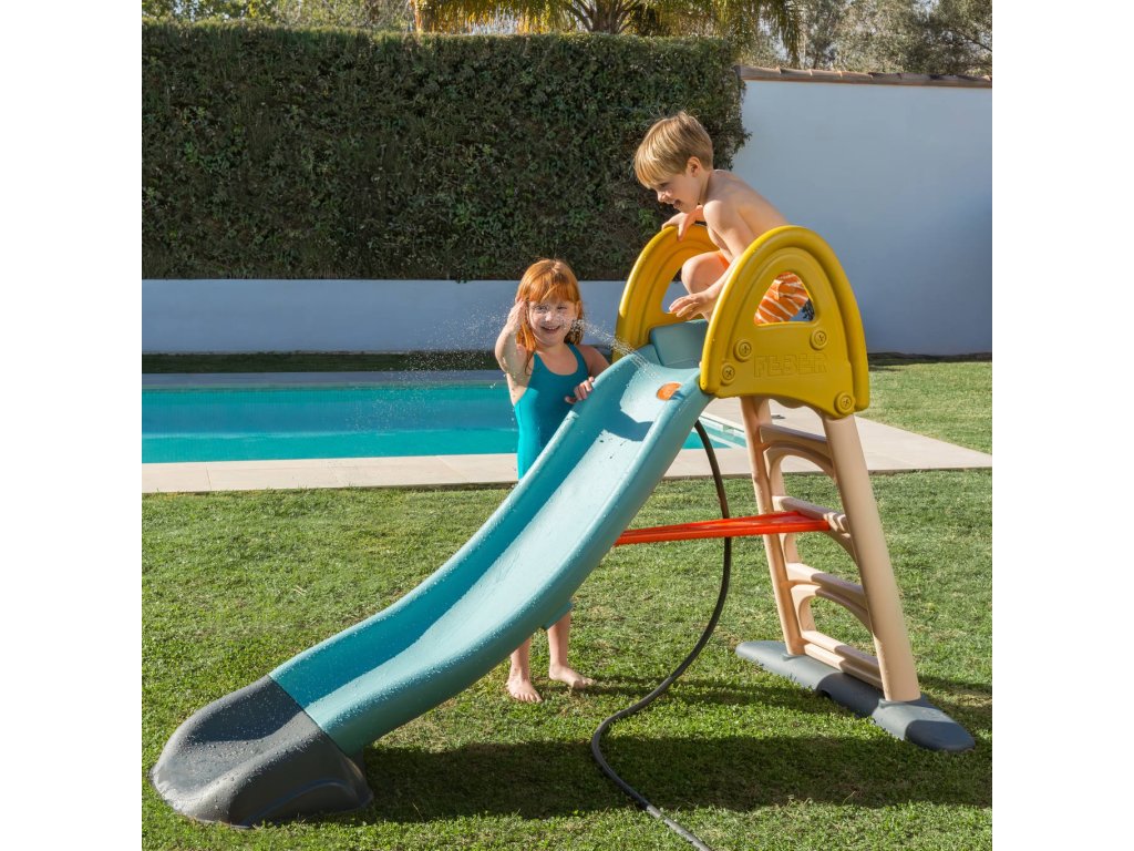 Príležitostný snímok španielska značka Feber pre deti od 3 rokov.Dĺžka snímky 190 cm, pohodlnérebrík s rukoväťami k vstupu dieťaťa poskytnezabezpečenie. Pripojte záhradnú hadicu k šmýkačke a mátevodné ihrisko ideálne na horúce dni. Výrobok je vyrobený z odolného plastu s povrchovou úpravouaNTI-UV povlak, ktorý chráni pred vyblednutím.