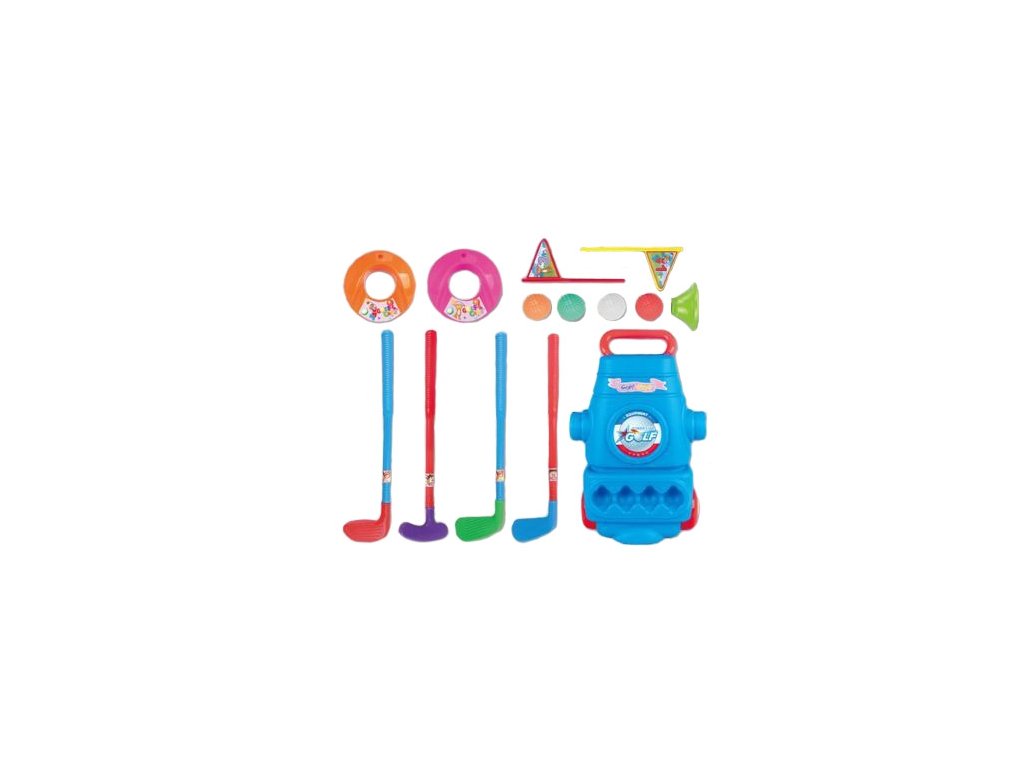 - - súprava pozostáva z4 palice, dve jamky, dve vlajky, 4 loptičky a stojan na príslušenstvo s pripojenými kolieskami,