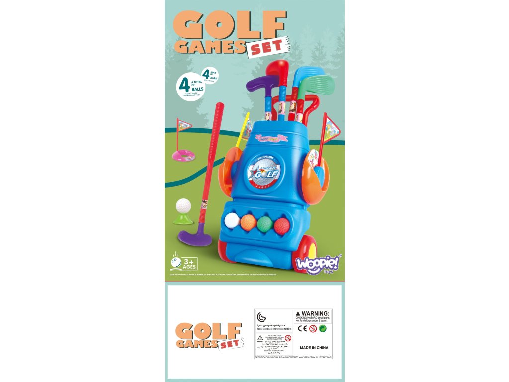 Golfový set od spoločnostiWoopieje ideálny spôsob, ako aktívne tráviť voľný čas. Súbor cvičeníkoncentrácia,reflex,zručnosť ipresnosť. Táto hra je vyrobená zo 100 % vysokokvalitného, netoxického plastu odolného voči poveternostným vplyvom a predstavuje skvelú zábavu pre celú rodinu. Ľahko nastaviteľný otvor umožňuje hru hrať na záhrade aj doma. Výrobok je vhodný pre deti staršie ako3 roky. Súprava obsahuje4 golfové palice a4 loptičky v rôznych farbách adve "diery" s vlajkami. Celá vec sa ľahko prepravuje vďaka kolieskam pripevneným k vozíku.