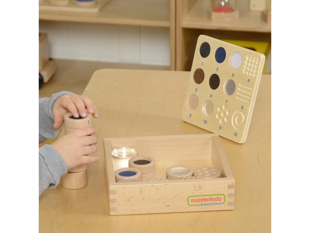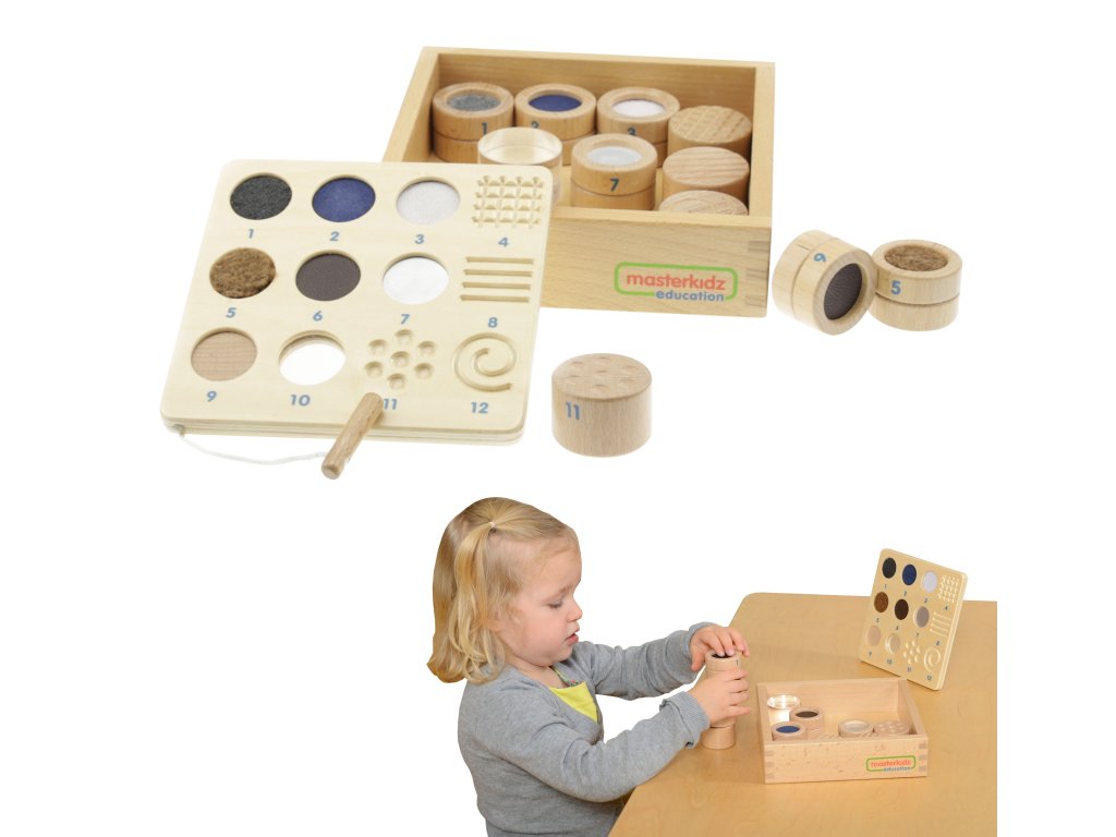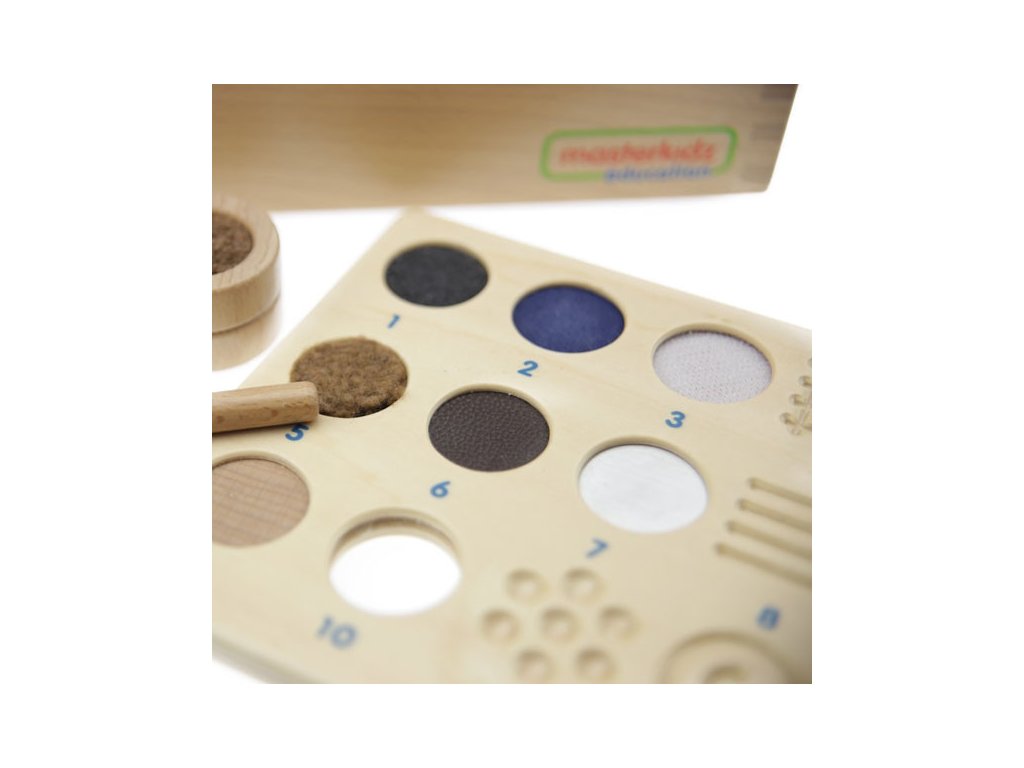 Doplnok Guess by Touch od značky Masterkidz je dokonalým obohatením hry, ktoré posúva rozvoj zmyslu pre dotyk na vyššiu úroveň. Súprava obsahuje 12 drevených blokov: 7 kociek predstavuje rôzne druhy materiálov a 5 kociek má rôzne textúry. Úlohou dieťaťa je identifikovať bloky len na základe hmatu, vďaka čomu je hra nielen zaujímavá, ale aj rozvojová. Súprava najlepšie funguje v kombinácii s hracou krabicou Hádaj na dotyk (ME04055)