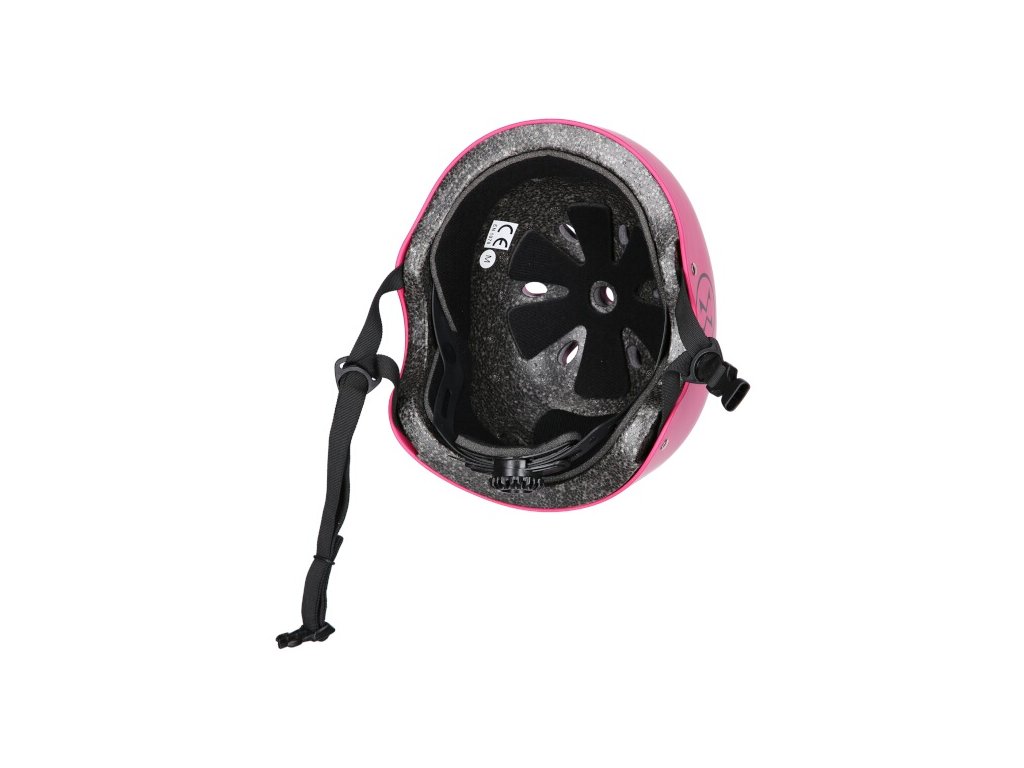 Prilba sa dodáva v rôznych veľkostiach, ale má aj systém, ktorý umožňuje presné prispôsobenie. To sa vykonáva pomocou gombíka na zadnej strane prilby. Remienok s praktickou prackou zaistí, že helma určite nespadne, a že ak ju budete potrebovať rýchlo zložiť, nebude to problém.