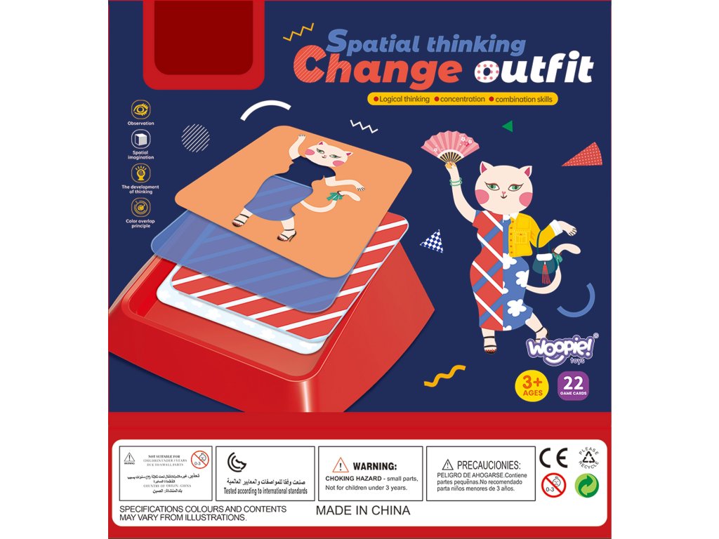 - Vyberte príslušné karty s odevmi a rozmiestnite ich na stojane tak, aby presne kopírovali oblečenie z karty s výzvou