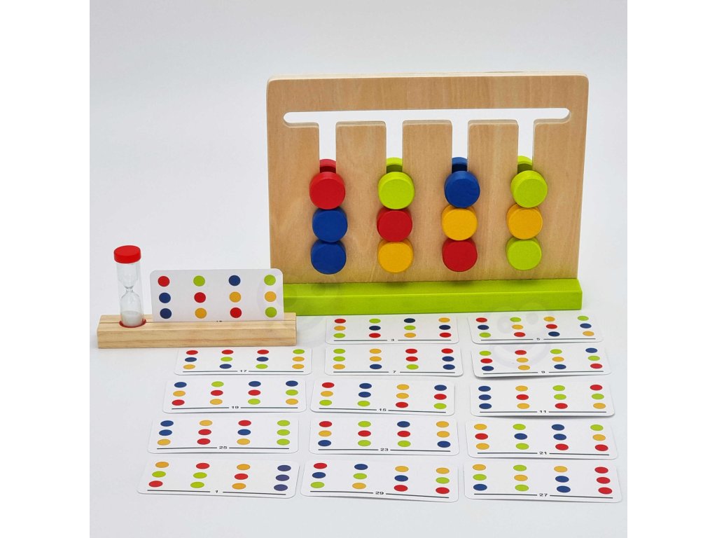 - - Pravidlá hry sú jednoduché: vyberte si1 karta z 30 s usporiadaním bodiek ausporiadať to isté do konca času na presýpacích hodinách!