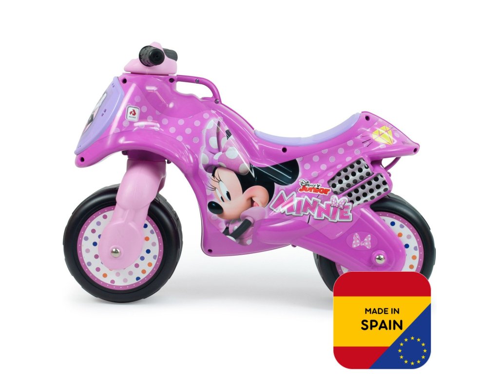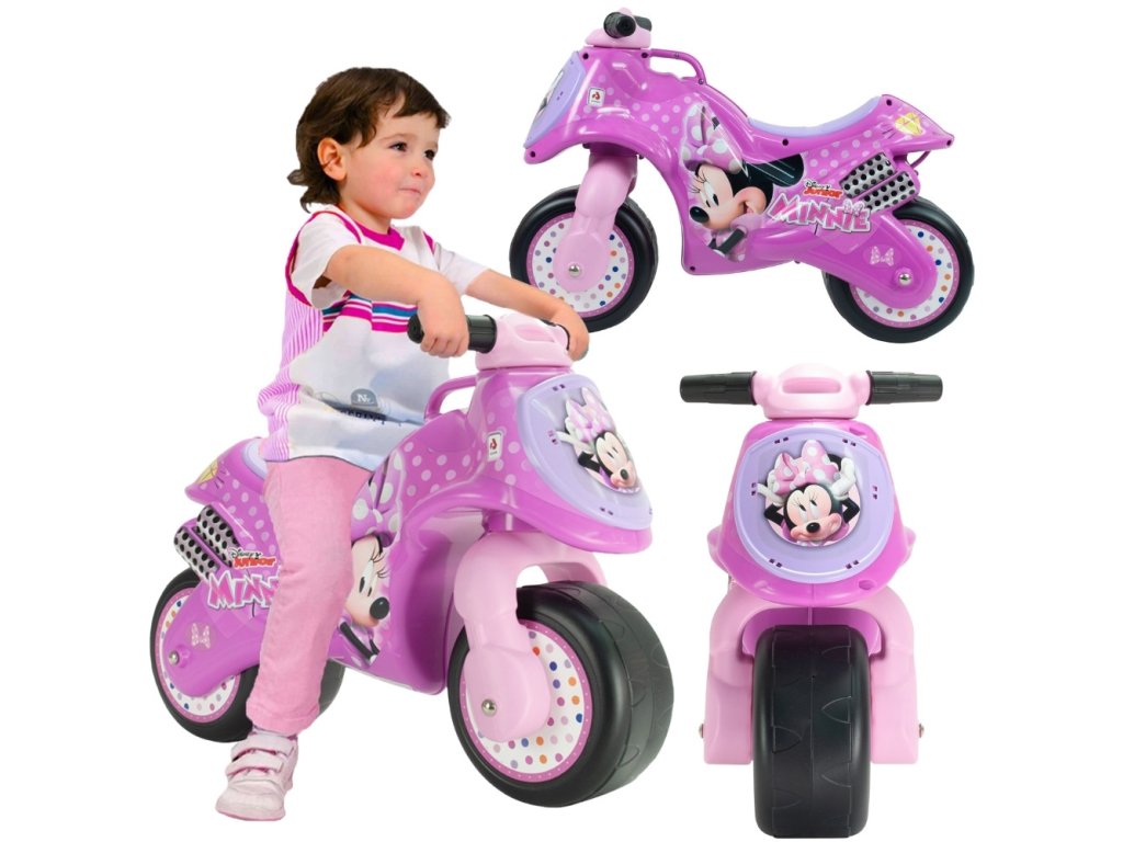 - - motocykel v ružovej farbes licenciou Minnie Mousepre deti od 18 mesiacov,