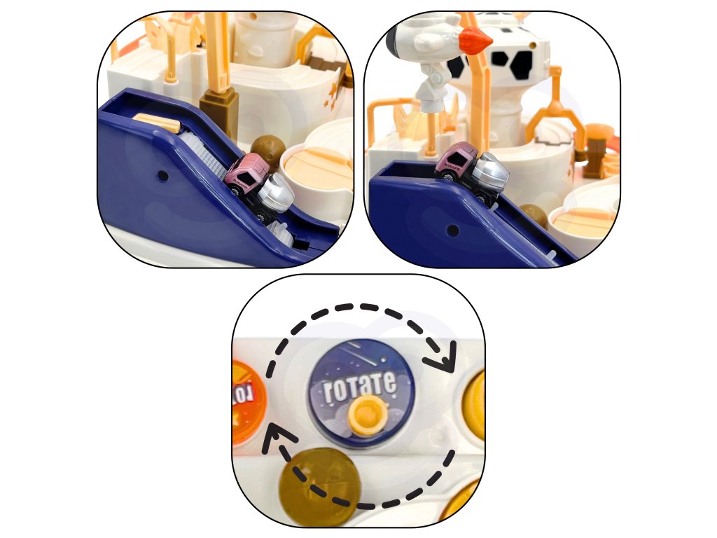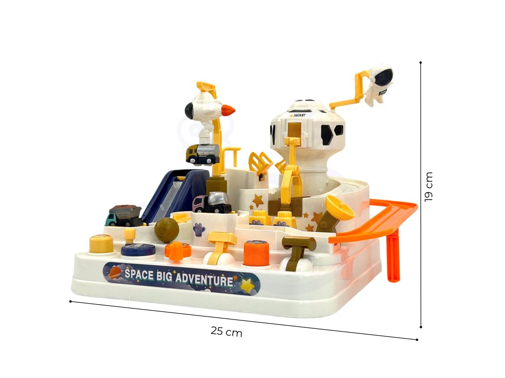 Interaktívna stránka prekážková dráha"Vesmírne dobrodružstvo astronauta" je výnimočný darček pre malých objaviteľov, ktorí túžia po vzrušujúcich dobrodružstvách a nezabudnuteľných výzvach. Je to viac než len hračka - je to skutočná aréna, kde sa deti môžu vžiť do úloh vodičov a prekonávať rôzne prekážky. Vďaka dômyselnému dizajnu a rozmanitým prvkom hračka ponúka nezabudnuteľné chvíle plné vzrušenia a výziev. Je to ideálny nástroj pre rozvoj predstavivostii azručnosti manuálčo je tiež veľmi zábavné. Automobilová dráha poskytuje nielen príležitosť na jazdu, ale aj nadynamický,interaktívne prvkyhra sa hrá pomocou tlačidiel a gombíkov. Je to vzrušujúca hra, ktorá si vyžaduje koncentráciu a šikovnosť. Súprava obsahuje tri autíčka, ktoré môžu voľne preskúmavať dráhu v závislosti od fantázie batoľaťa. Vozidlá hru spestria alebo umožnia deťom na dráhe súťažiť. Prejazd dráhou sa zdá byť jednoduchý, ale početné prvky, ako naprprevodovky alebovýsuvné mosty vydať sa na cestuplný adrenalínu.
