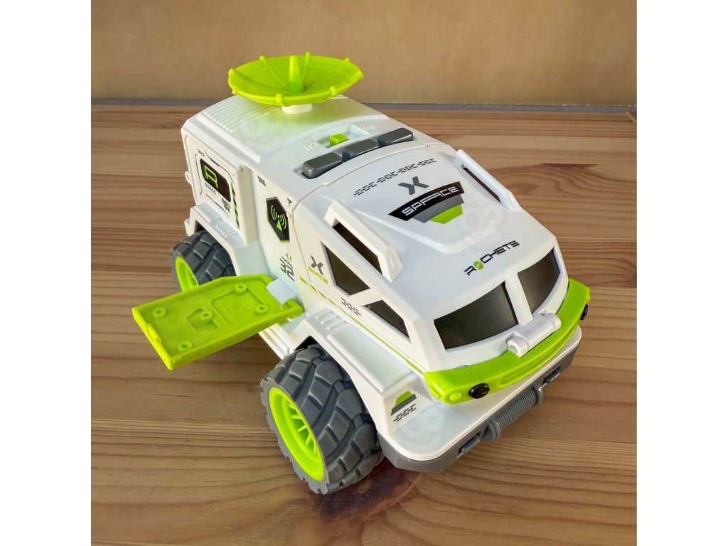 - - Interaktívne vesmírne vozidlo s pohyblivým radarom a otváracím oknom