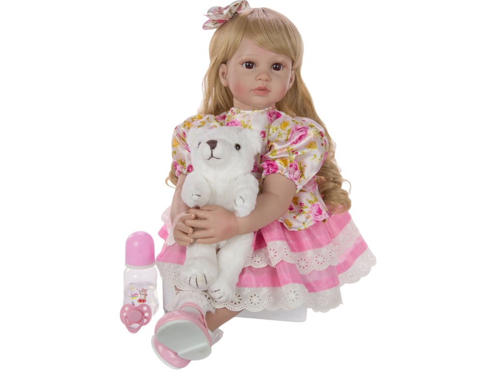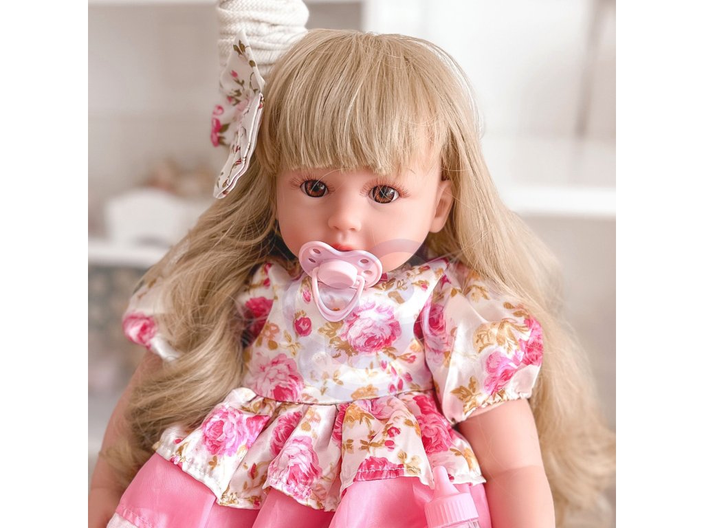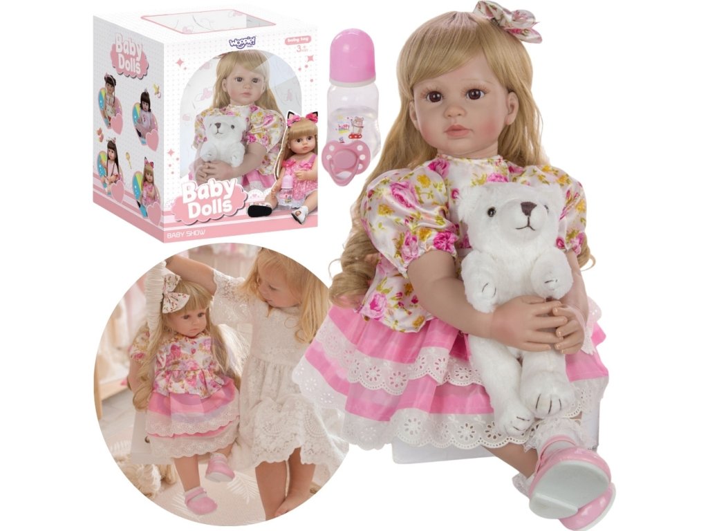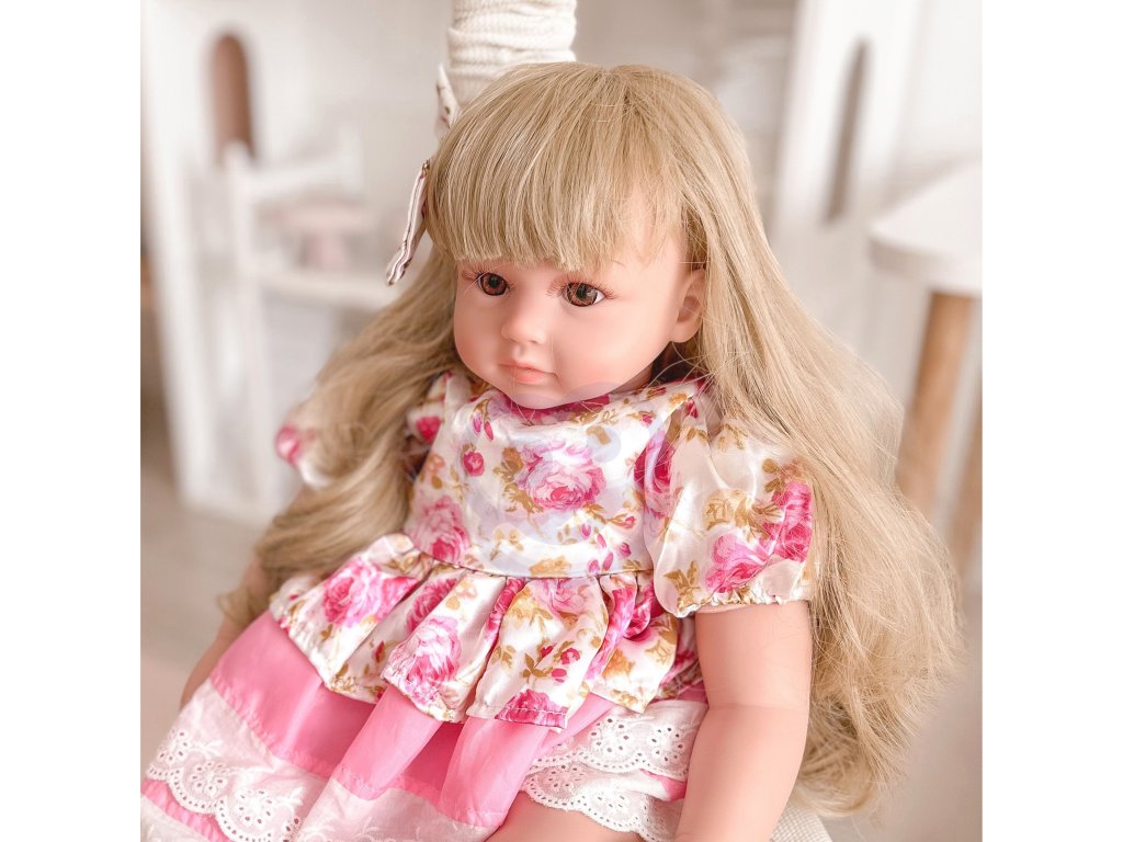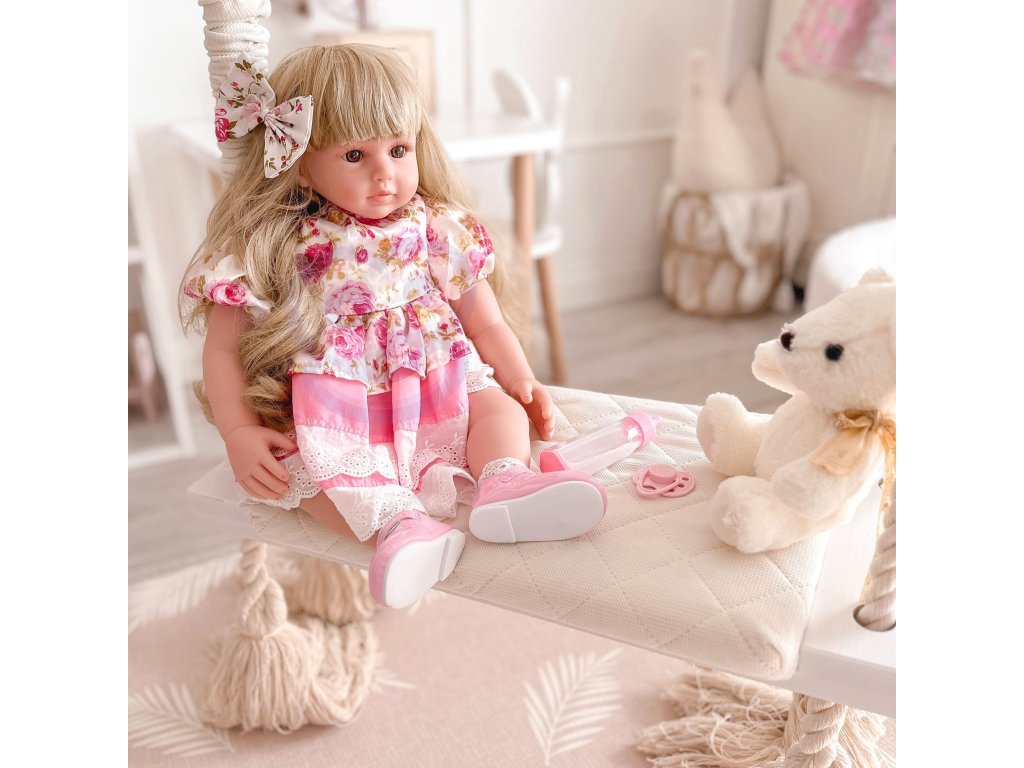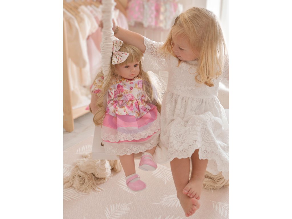 Interaktívna bábikaod značkyWOOPIE zo sérieROYAL je ako skutočné dieťa!...Hrou s bábikou si dieťa rozvíjazmysel pre empatiu azodpovednosť! Bábika je mäkká na dotyk a jej krásne oči priťahujú detskú pozornosť. Jednoznačnýprednosťou bábiky sú jej krásne, dlhé a lesklé vlasyvďaka vynikajúcej kvalite vlasov môže byť vaše dieťa kreatívne pri vytváraní rôznych účesov. Ruky bábiky sú prepracované, čo jej dodáva nádychrealizmus cez jemné klince, a ľahko začervenané lícaa zvýrazniť krásu bábiky. Množstvo prvkov v cene - zábava bude nekonečná, batoľa bude šťastné a vy budete mať istotu, že trávi čas hodnotnou hrou. Naše stránkybábiky bolivyrobené na s veľkou presnosťou i usilovnosť podrobnostiaby vyzerali ako skutočné.Bábika má na sebe ružové šaty s očarujúcimi volánmi. Šaty sú v páse prestrihnuté a zdobené farebnou potlačou. Oblečenie je doplnené ružovými topánkami a zodpovedajúcou čelenkou na hlave dievčatka.