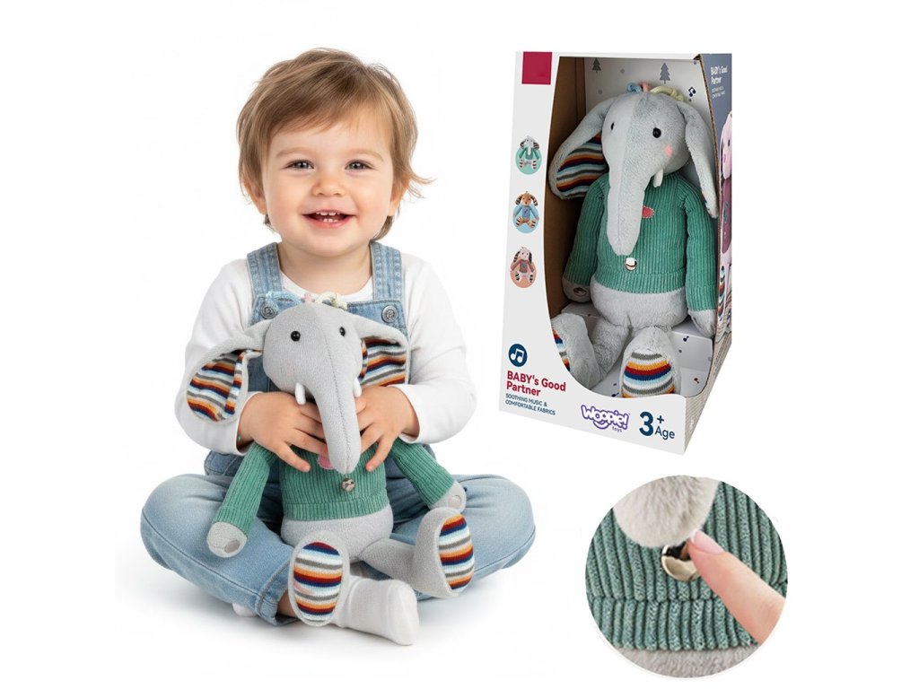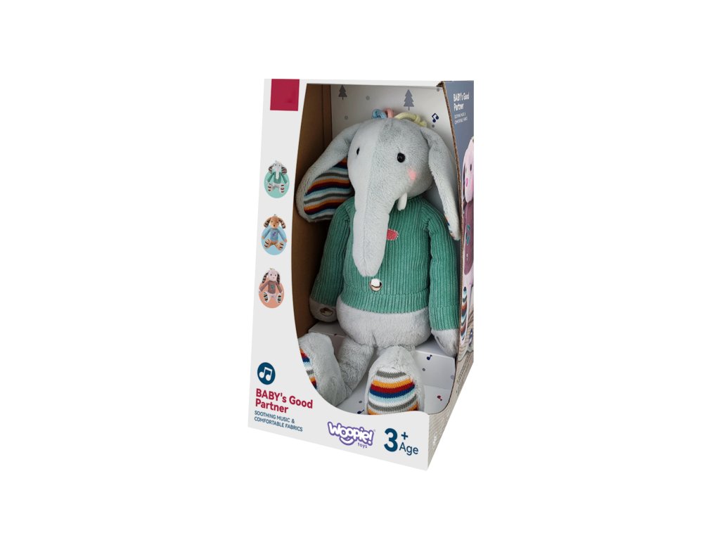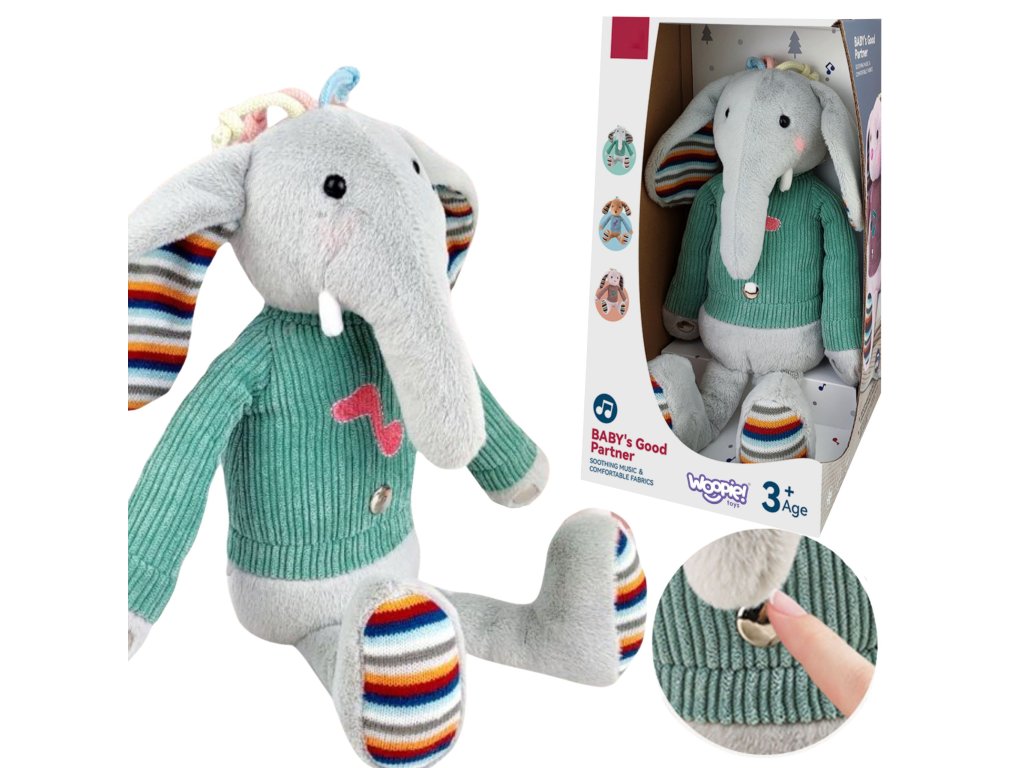 Interaktívny plyšový slon od značkyWOOPIE upokojuje a uspáva vaše dieťa. Je to rozkošný spoločník,mäkké a útulnéako aj výborný spoločník pri hrách a aktivitách.