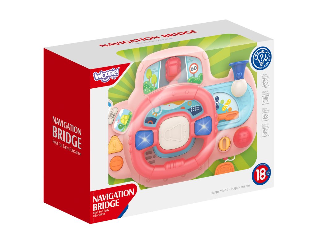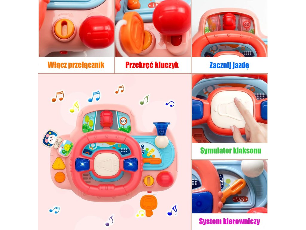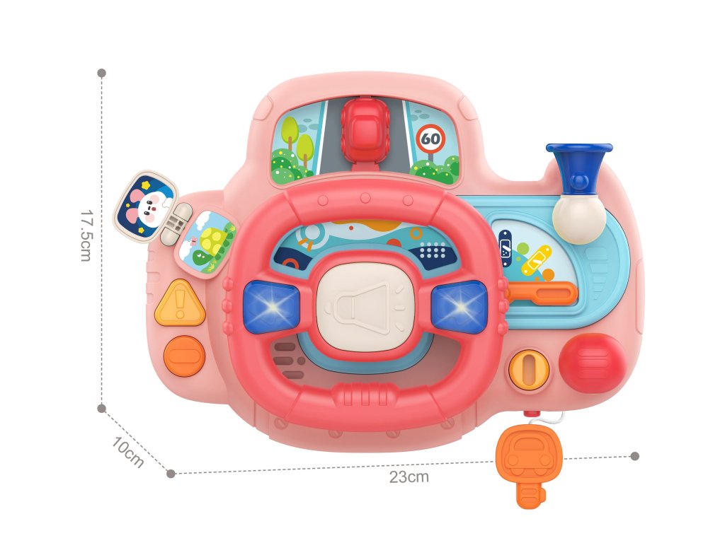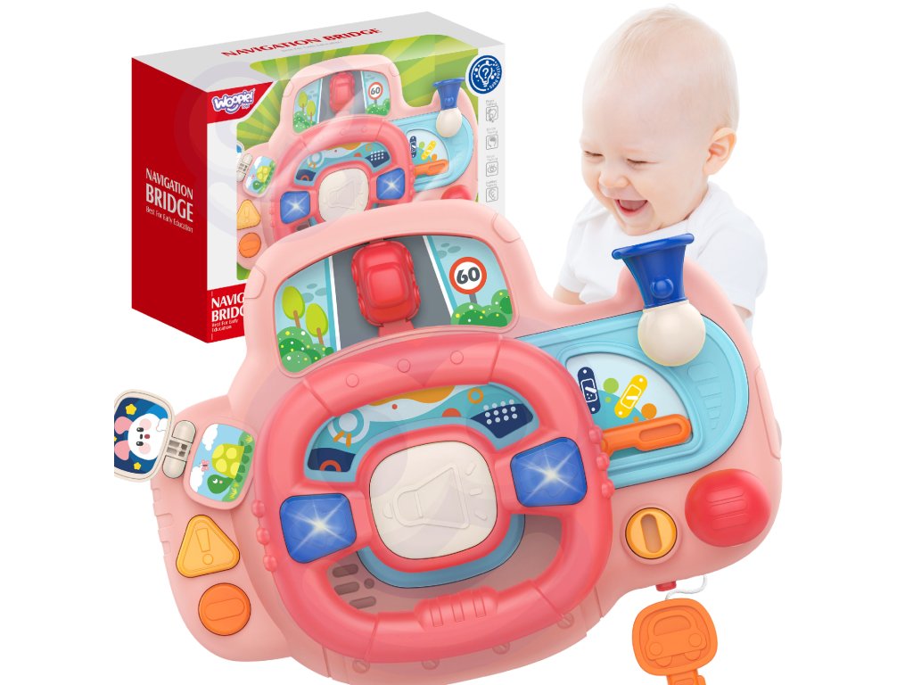 Elektronický volantplná aktivity a radosti pre značkuWOOPIE. Hračka obsahujetlačidlá, svetlá a zvuky, ktoré simulujú realistický zážitok z jazdy, ktoré zahŕňajú astimulovanie detskej predstavivosti. Otáčaním volantu sa autíčko pohybuje, čo zvyšuje zábavu vášho dieťatka. Volant s panelom má toľko11 funkciíktoré vám prinesú hodiny zábavy. Okrem toho výrobokje možné namontovať pomocou popruhov k postieľke, autosedačke a na mnohých ďalších miestach.