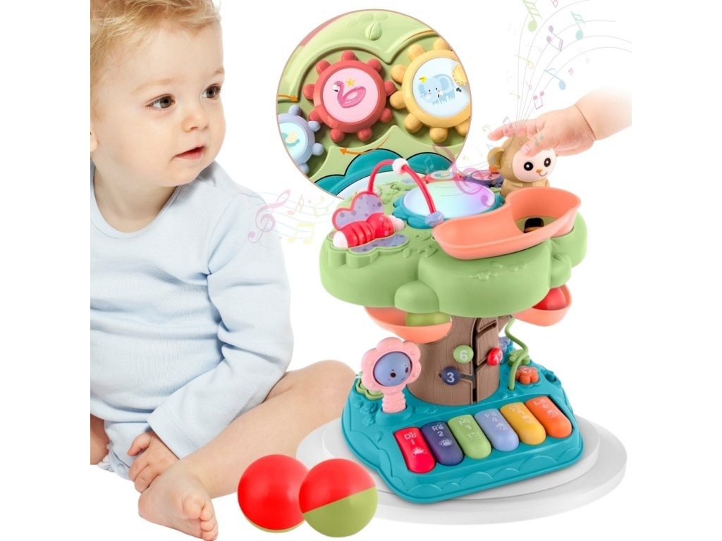 Tu je jedinečnýInteraktívne Drzewko Vzdelávanie, ktorá sa stane obľúbenou hračkou vášho dieťaťa. Toto farebné hracie centrum kombinuje hudobné, zmyslové a logické prvky na podporurozvoj jemnej motoriky, koordinácie oko-ruka aprvé kognitívne zručnosti. Hračka so 14 rôznymi funkciami poskytuje dlhotrvajúcu zábavu a podporuje učenie prostredníctvom aktívnej hry. Strom má celý rad interaktívnych prvkov - odhra na klavíri iluminiscenčný bubon, podľaguľôčková dráhaaž doopica uvoľňujúca loptičky a farebné korálky na počítanie. Každý prvok bol navrhnutý s ohľadom na bezpečnosť a rozvoj hry. Počet funkcií a pohyblivých častí je obrovský a poskytne vášmu dieťaťu veľa zábavy pri skúmaní.