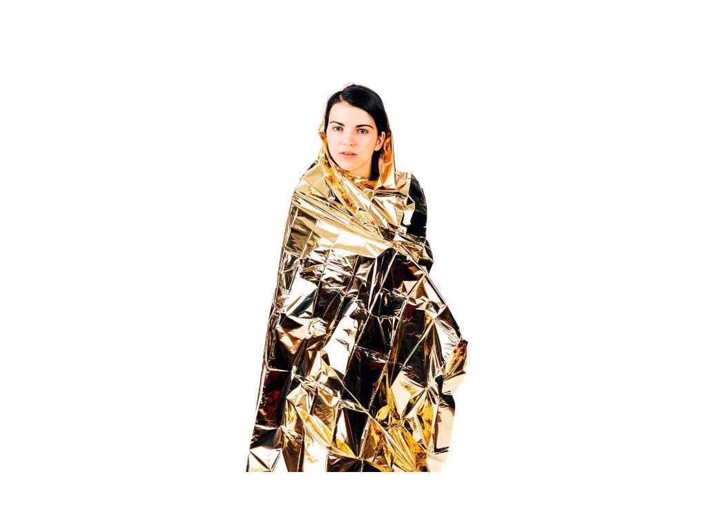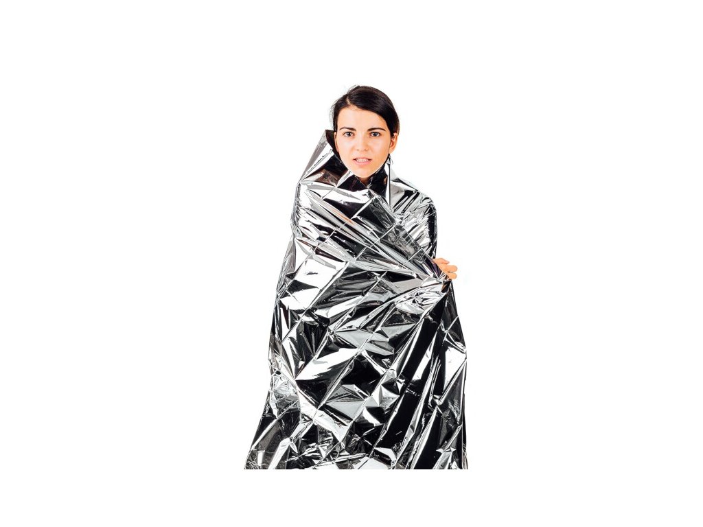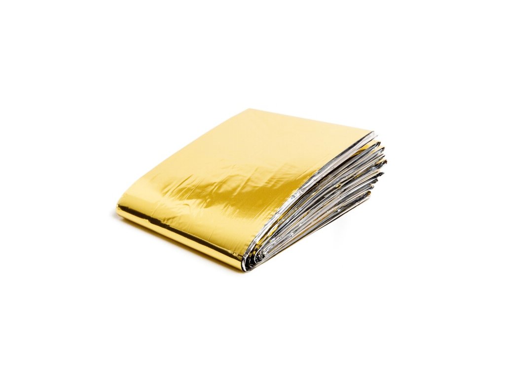 - zlatou stranou von (striebornou stranou dovnútra), ak potrebujeme udržať postihnutú osobu v teple, zabrániť podchladeniu, chrániť pred chladným počasím, vetrom, dažďom.