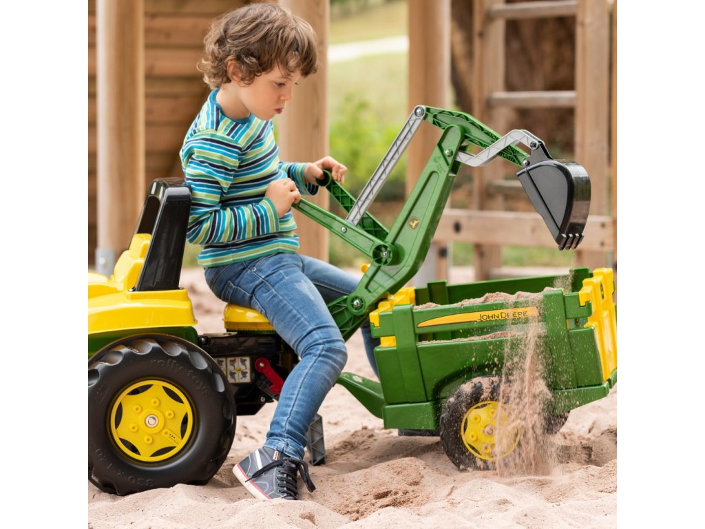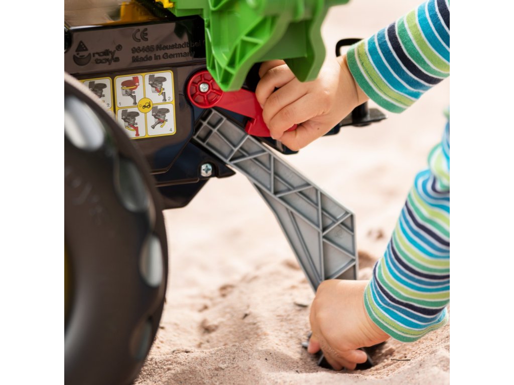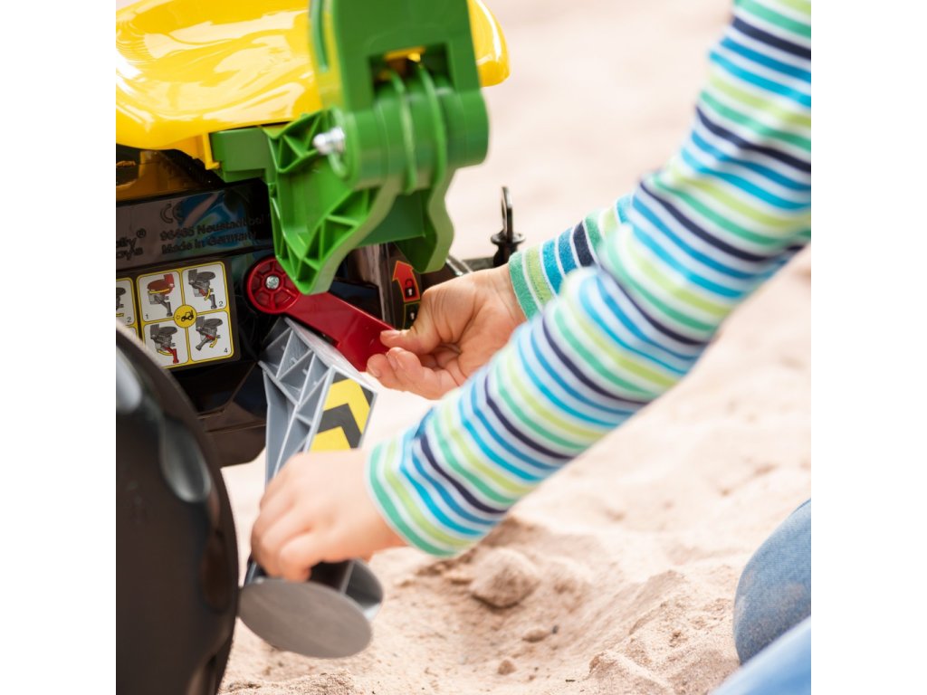 RollyBackhoe rýpadlo nalicencie John Deere so sedadlomna montáž. Kompatibilné s akýmkoľvek traktorom Rolly Toys. Ideálny darček pre malého staviteľa. Bager má stabilizáciu v podobe nohy a pohodlné sedadlo. Rameno hračky má automatický blokovací mechanizmus, ktorý umožňuje bezpečnú hru. S týmto plne funkčným bagrom môžu deti vykonávať vlastné stavebné práce na záhrade alebo na ihrisku. S bagrom John Deere RollyBackhoe môžu malí stavební inžinieri popustiť uzdu svojej fantázii a objavovať svet staviteľstva. Toto vysokokvalitné príslušenstvo ponúka hodiny zábavy a zároveň podporuje fyzická aktivita u detí.