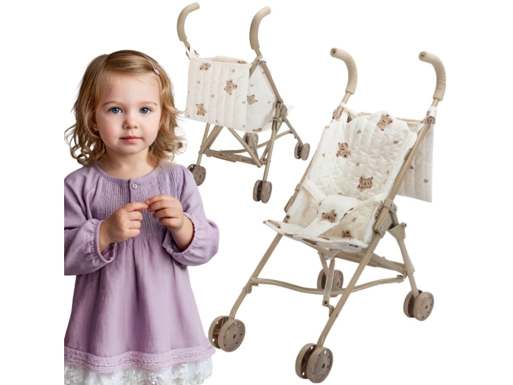 Rozkošný kočík pre bábikyod značky Woopie je ideálna hračka pre každé dievčatko, ktoré sa rado hrá na starostlivosť o svoje milované bábiky a plyšové hračky. Vďaka ľahkej skladacej konštrukcii sa kočík pohodlne používa a ľahko prenáša. Mäkké sedadlo krémovej farby s rozkošným dizajnom medvedíka mu dodáva jedinečný charakter a podporuje hranie. Kočík je ideálny na doma aj na prechádzky vonku. Je to skvelý spôsob, akorozvoj empatie, predstavivosť i zručnosti dieťaťa v oblasti starostlivosti.