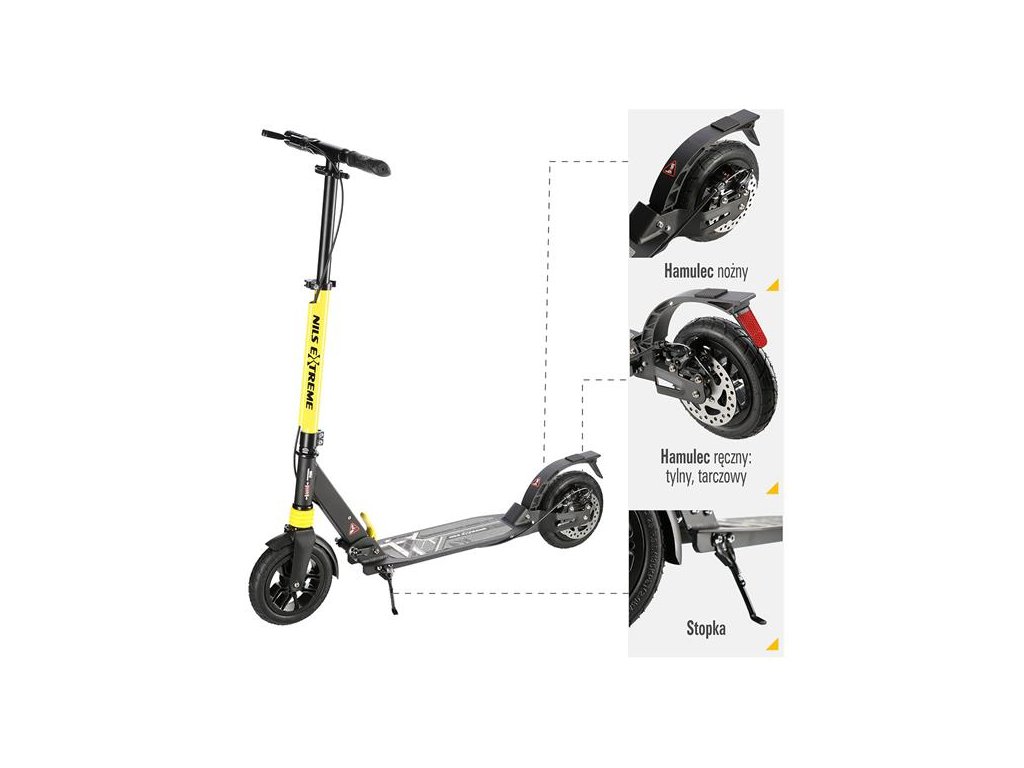 Kolobežka NILS Extreme HM208T je vhodná pre deti aj dospelých. Model HM208T je vybavený tlmicmi na predných a zadných kolesách a mechanickou kotúcovou brzdou.
