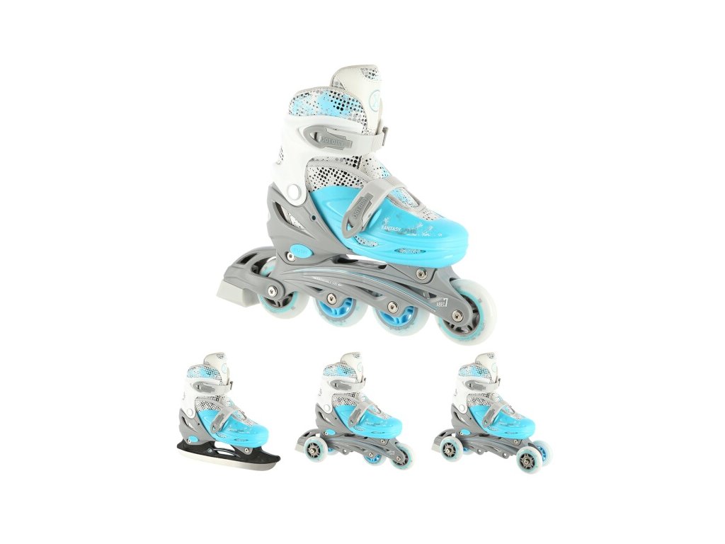 NILS Extreme NH18331 sú kolieskové korčule 4v1 s variabilným podvozkom a vymeniteľnými nožmi na ľad, určené pre začiatočníkov a stredne pokročilých používateľov.