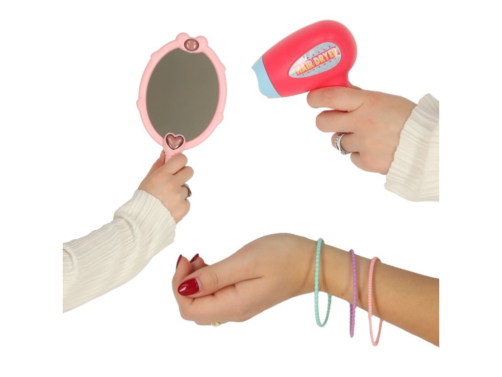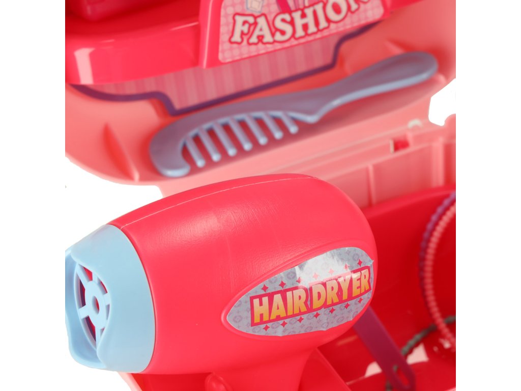 Krásny plastový kufrík ukrýva množstvo pokladov, ktoré potešia každú malú slečnu alebo budúcu kaderníčku.