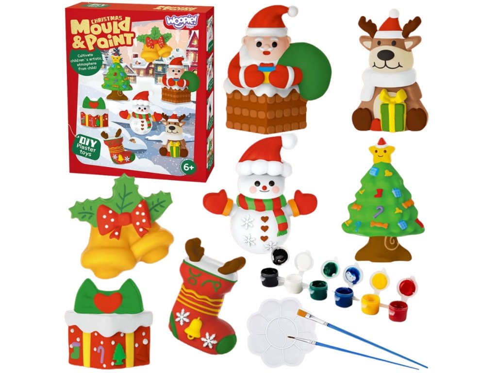 Kreatívna súprava WOOPIE s farbami pre domácich majstrov Vyrobte si sadrové odliatky a maľujte - vianočná súprava
