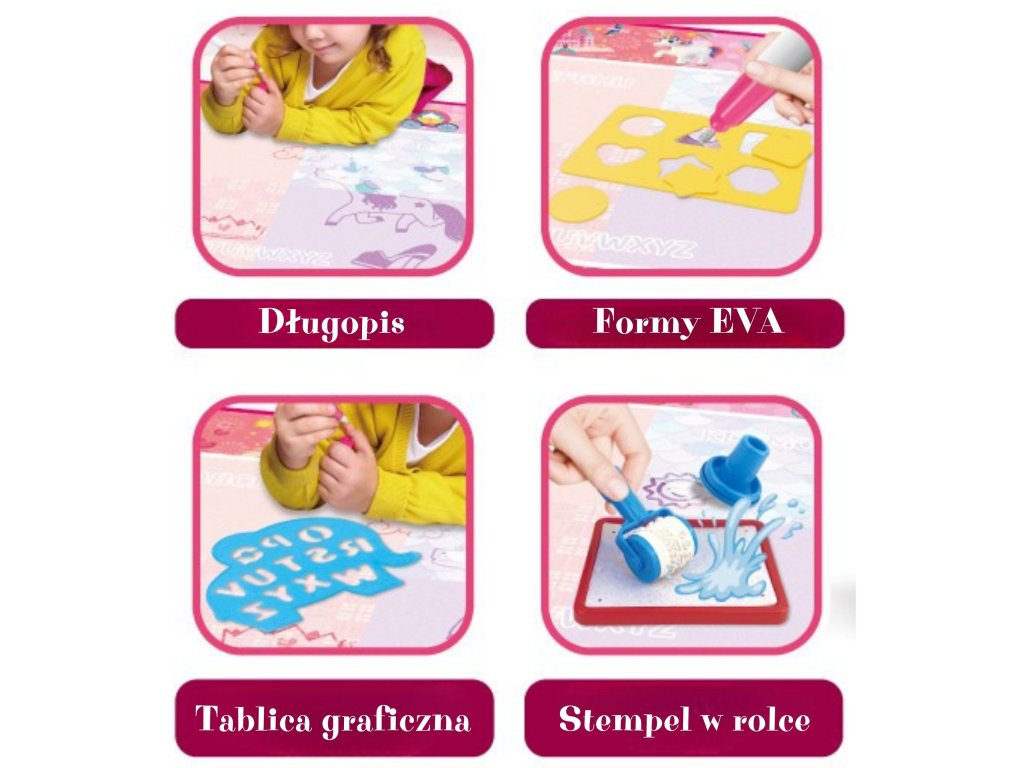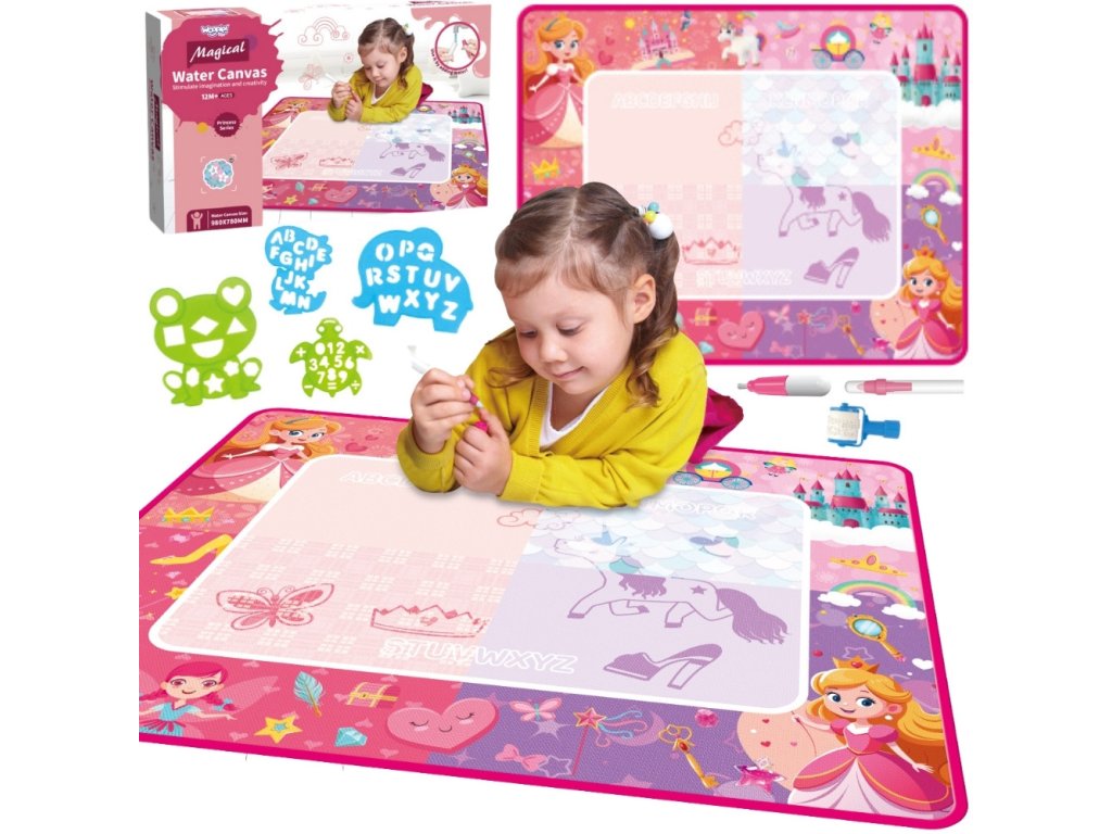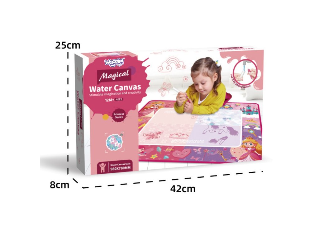 Objavte čarovnú zábavu bez neporiadku! Vodná podložkaMagické vodné plátno od značkyWoopie nakreatívny priestor,na ktoré môže dieťa kresliť a maľovaťlen s vodou. Dosť naplňte špeciálne pero vodou, vytvárať farebné obrázky, ktoré po chvíli zmiznú a uvoľnia miesto novým výtvorom. Podložka má rozkošný motív princeznej, vďaka ktorému sa každý malý umelec bude cítiť výnimočne. Je to ideálna hračka pre deti už odod veku 12 mesiacov - rozvíja predstavivosť, kreativitu a manuálne zručnosti.