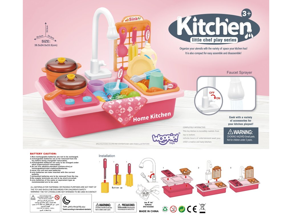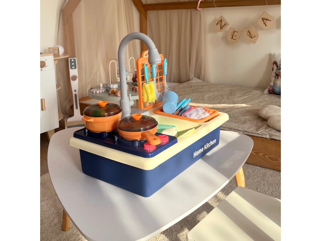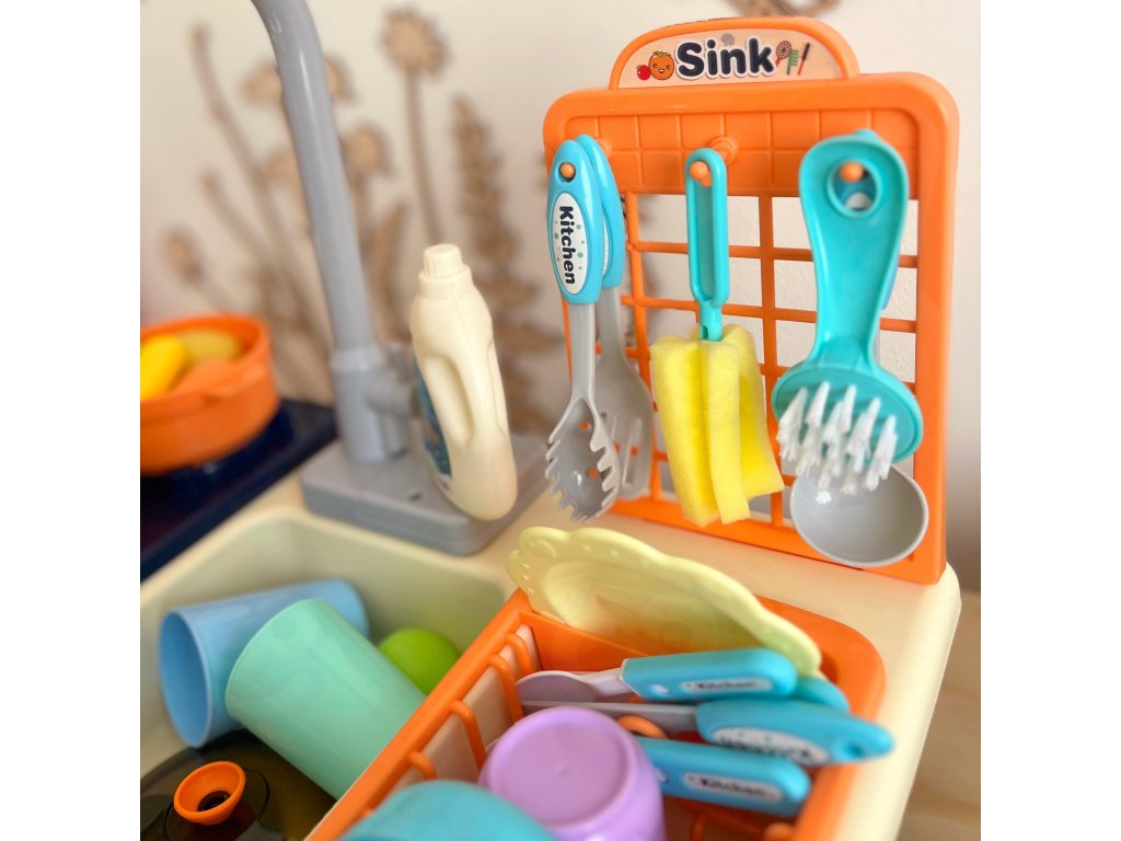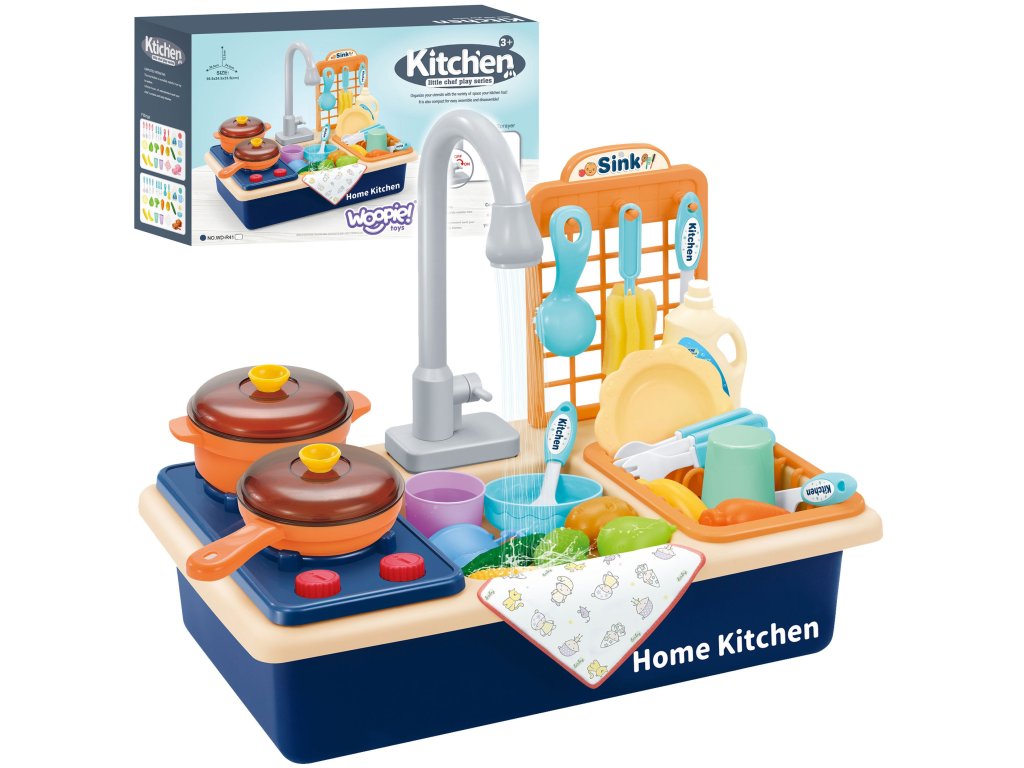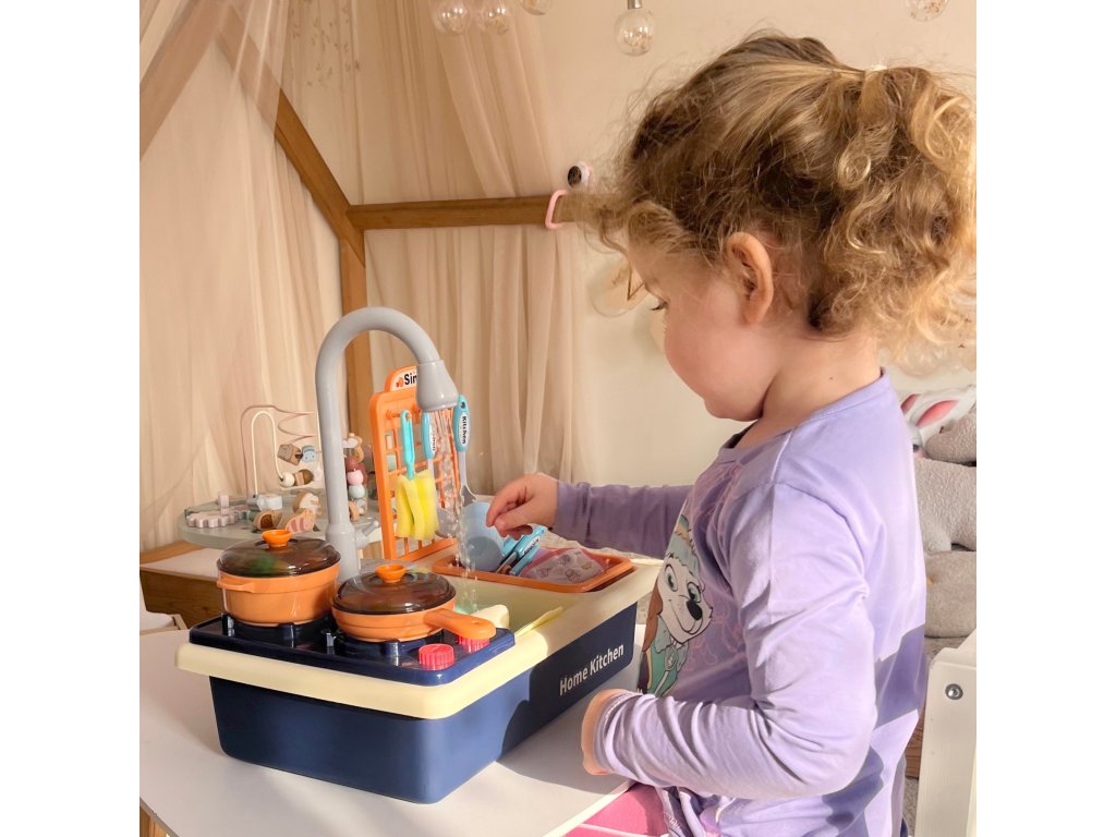 Drezový sporák 2v1 od značkyWOOPIEumožní deťom variť a umývať riad rovnako ako ich rodičia - napodobňovať od útleho veku! Hračka jedokonale reprodukovaný, vďaka čomu vaše dieťa nadobudne dojem, že vykonáva skutočné kuchynské činnosti. Mápohyblivé prvky ako sú kohútiky sporákov a kohútik, z ktorého saskutočná voda. Stačí naliať vodu do misky a pozorovať, ako sa dieťa hrá, a keď skončíte, jednoducho vyprázdnite spodnú misku. Okrem toho súprava obsahuje množstvo príslušenstva, ako naprhrnce ipotraviny. Hra na varenie, umývanie riadu a podobné práce pomáha deťom získať zmysel prezodpovednosti iautonómia.