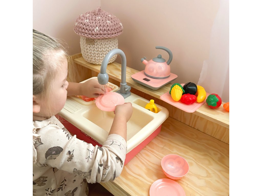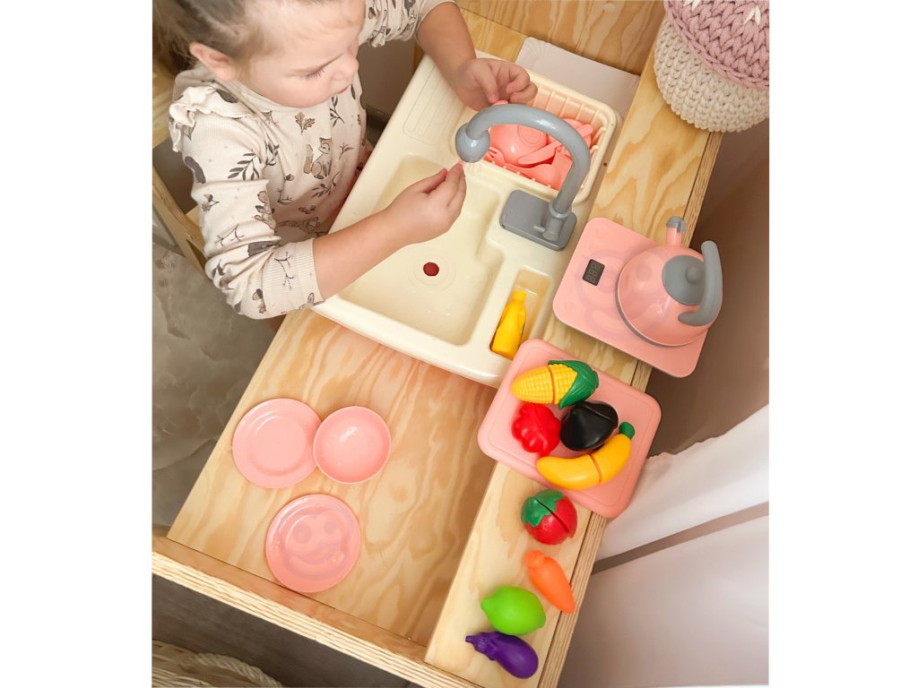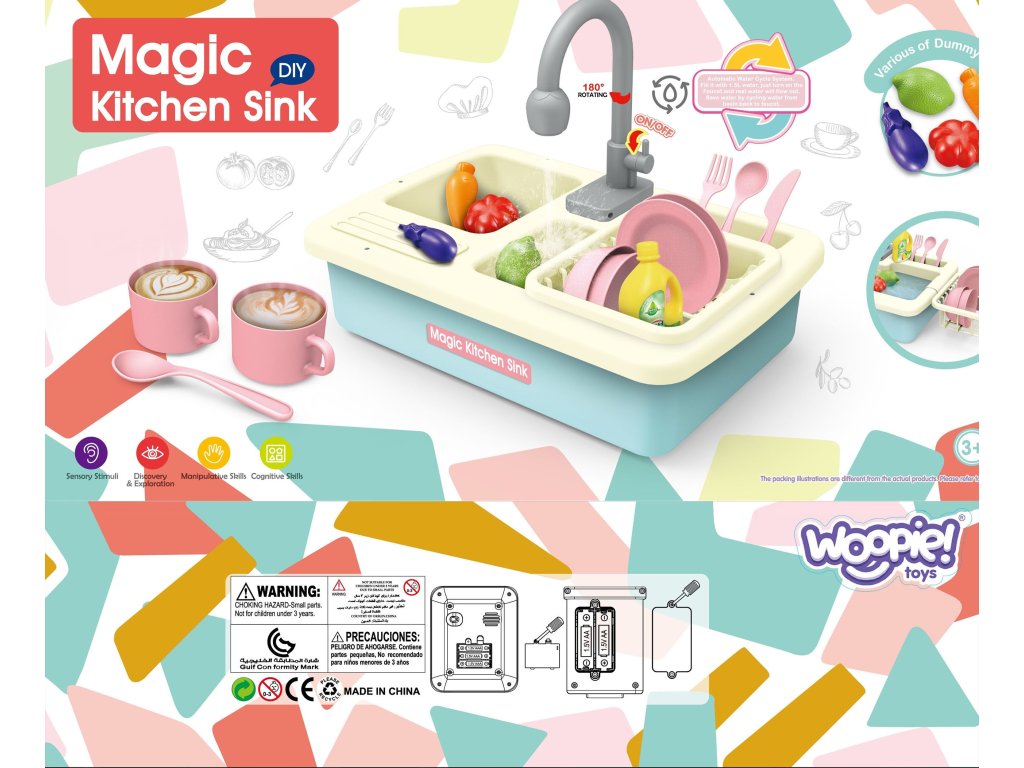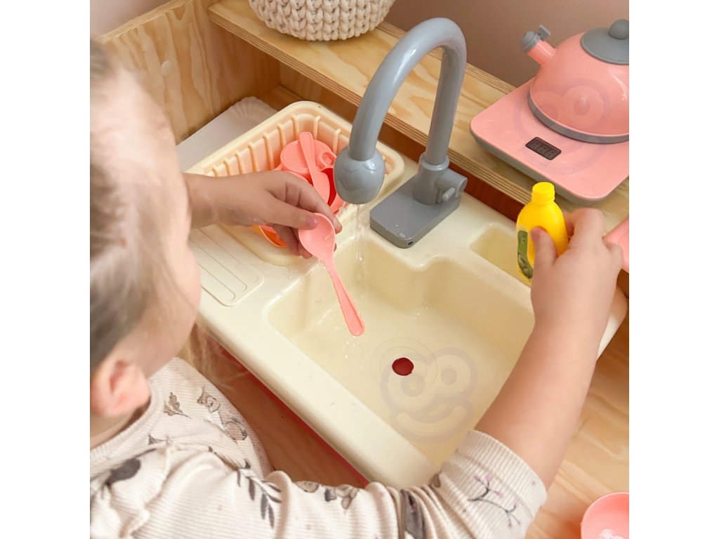 Drezový sporák 2v1 od značky WOOPIE umožní deťom variť a umývať riad rovnako ako ich rodičia - napodobňovať od útleho veku! Hračka jedokonale reprodukovanýmá veľkú kuchynku, ktorá dáva dieťaťu pocit, že robí skutočnú prácu v kuchynipohyblivé prvky ako kohútik, z ktorého tečieskutočná voda. Stačí naliať módu do misky a sledovať, ako sa vaše dieťa hrá, a keď skončíte, jednoducho vyprázdnite spodnú misku. Okrem toho sú ovocie a zelenina spojené suchým zipsom, takže vaše dieťamôžete ich rozrezať na polovicu, ako skutočné produkty! Hra na varenie, umývanie riadu a podobné práce pomáha deťom získať predstavu ozodpovednosti iautonómia,ktorá je dôležitou súčasťou sociálno-emocionálneho učenia.