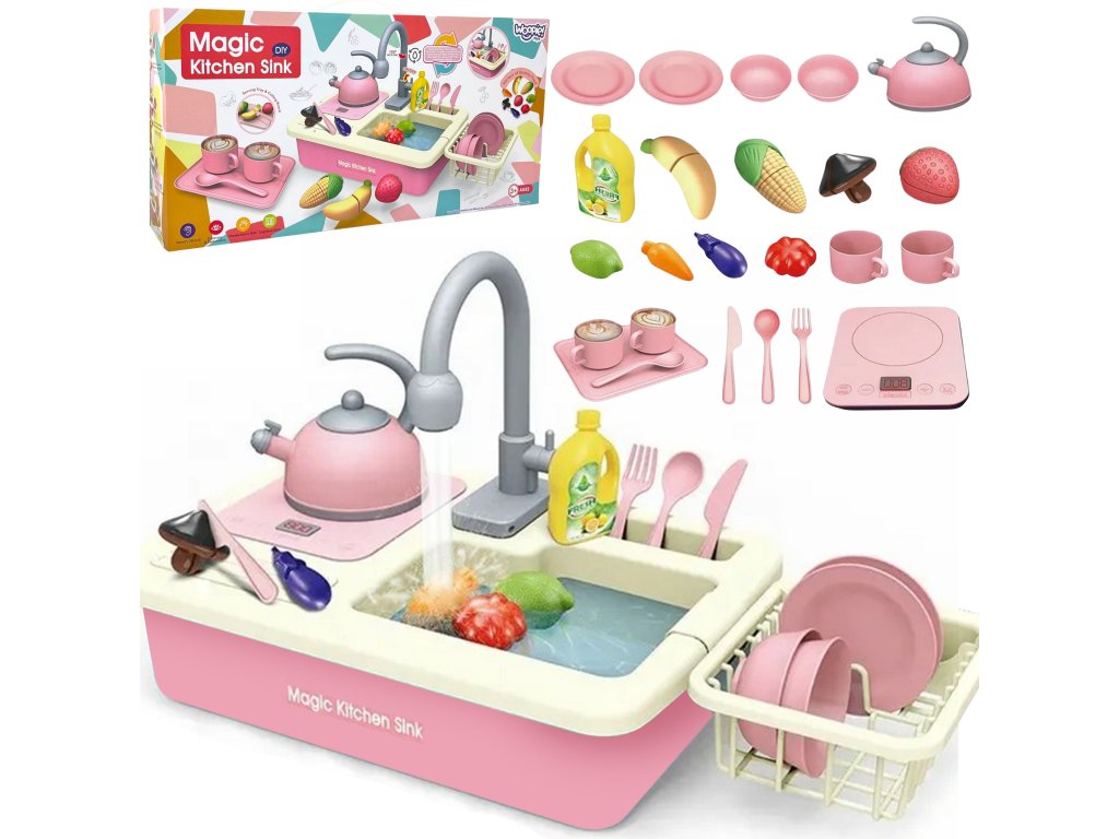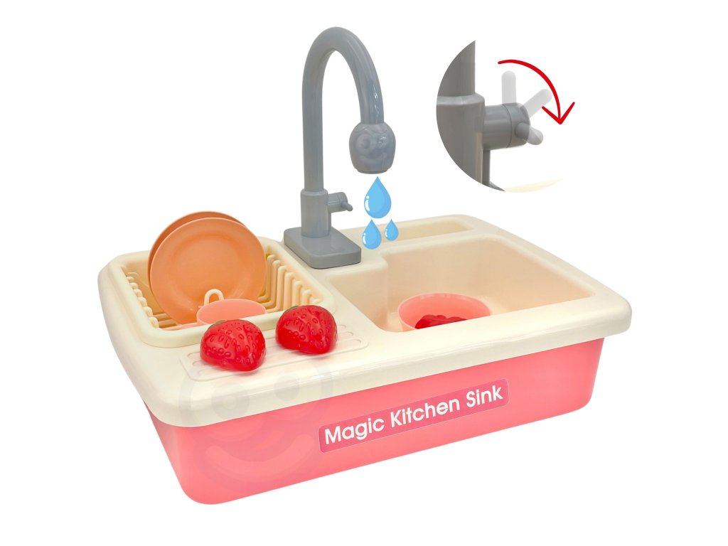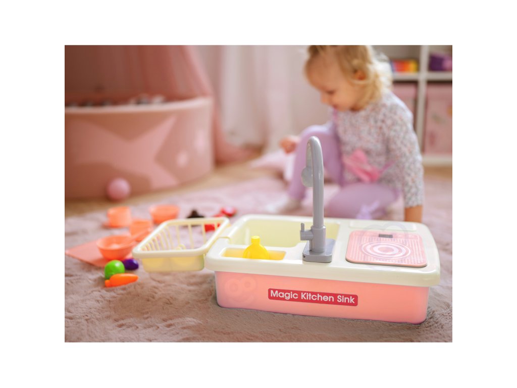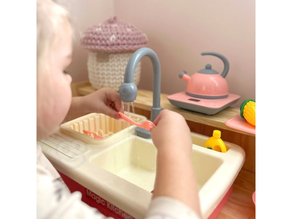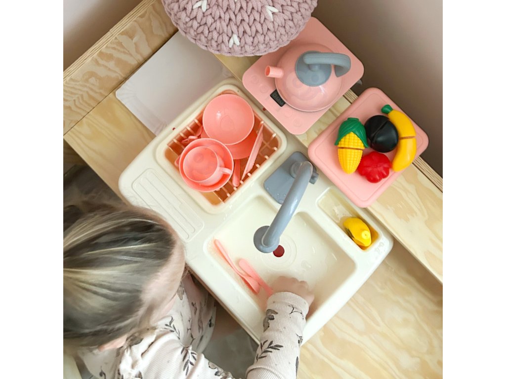 Drezový sporák 2v1 od značky WOOPIE umožní deťom variť a umývať riad rovnako ako ich rodičia - napodobňovať od útleho veku! Hračka jedokonale reprodukovanýmá veľkú kuchynku, ktorá dáva dieťaťu pocit, že robí skutočnú prácu v kuchynipohyblivé prvky ako kohútik, z ktorého tečieskutočná voda. Stačí naliať módu do misky a sledovať, ako sa vaše dieťa hrá, a keď skončíte, jednoducho vyprázdnite spodnú misku. Okrem toho sú ovocie a zelenina spojené suchým zipsom, takže vaše dieťamôžete ich rozrezať na polovicu, ako skutočné produkty! Hra na varenie, umývanie riadu a podobné práce pomáha deťom získať predstavu ozodpovednosti iautonómia,ktorá je dôležitou súčasťou sociálno-emocionálneho učenia.