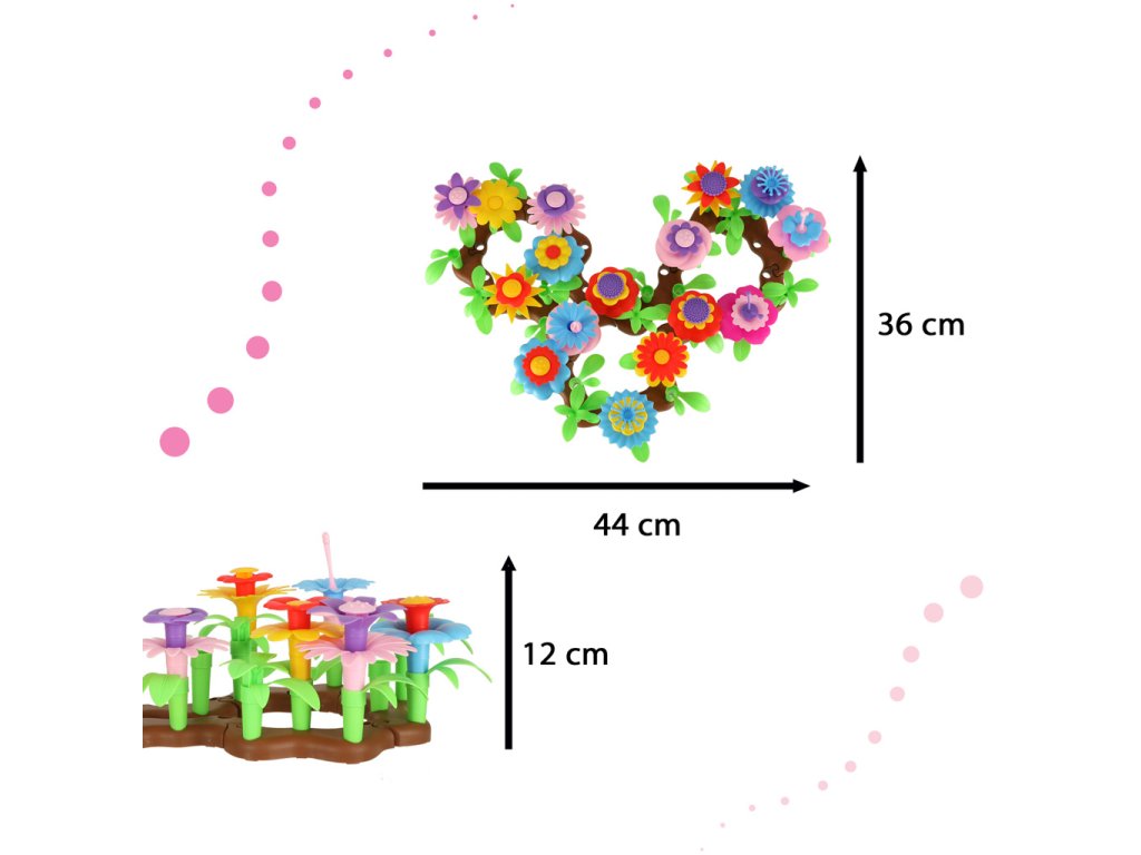 Sada kreatívnych blokov, ktoré vám umožnia vytvoriť si vlastnú kvetinovú záhradu! 104 tehličiek vám umožní kombinovať prvky podľa vlastného uváženia. Hra rozvíja kreativitu a manuálne zručnosti. Materiál: plast. Rozmery postavenej záhrady: Rozmery: 44x36x12 cm.