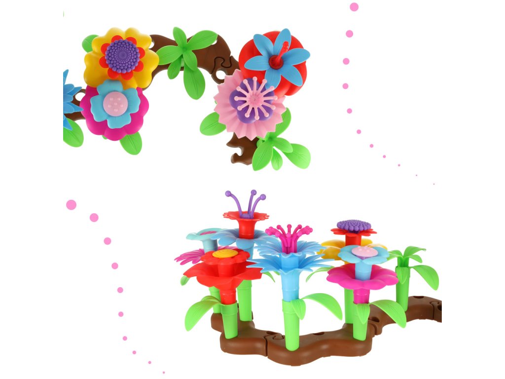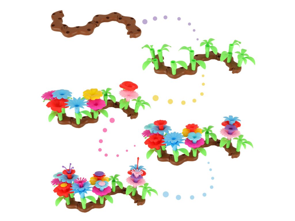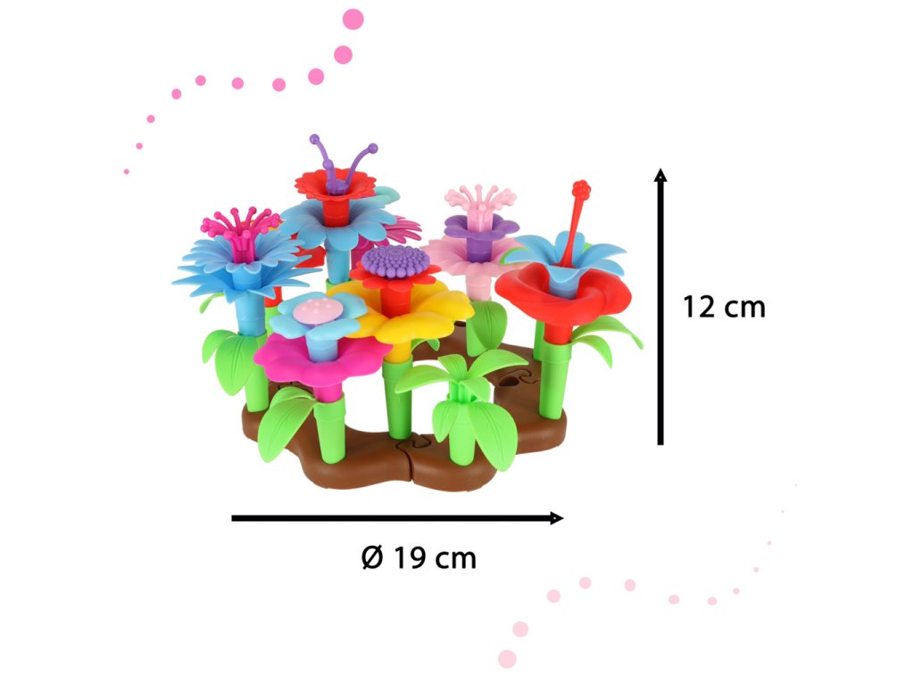 Sada kreatívnych blokov, ktoré vám umožnia vytvoriť si vlastnú kvetinovú záhradu! Vďaka 48 kockám môžete prvky kombinovať podľa vlastného uváženia. Hra rozvíja kreativitu a manuálne zručnosti. Materiál: plast. Rozmery postavenej záhrady: Rozmery: 19x19x12 cm.