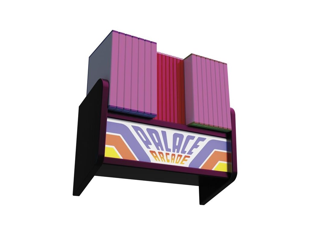 Rozmery: 34x22,5x14cm. Lámpara inspirada en la parte superior de los terminales de los salones recreativos. Está fabricada en MDF y acrilato. Dispone de un modo de iluminación con un único botón de control en el lateral de la lámpara. Tiene dos fijaciones en la parte trasera para colgarla fácilmente y las paredes laterales están ligeramente elevadas, por lo que se puede utilizar como estantería. Funciona con un cable USB tipo C - entrada 5V DC 1A (incluido) y tiene una batería interna recargable Li-ion 2000 mAh 3,7V con 6 horas de autonomía y un tiempo máximo de carga de 3 horas 30 minutos. Se incluyen dos tacos y dos tornillos para su instalación.