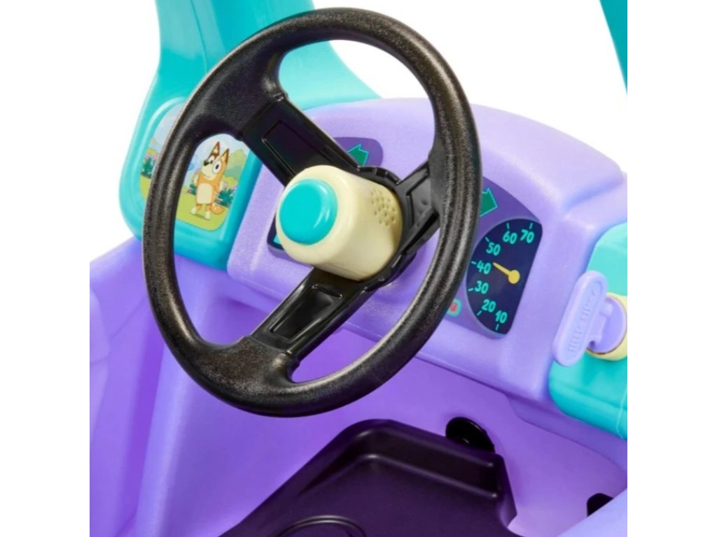 Little Tikes Útulné kupé Blueyje farebné jazdítko inšpirované populárnym kresleným filmom Bluey. Klasická silueta Cozy Coupe v kombinácii s farbami a detailmi známymi zo seriálu poteší každého malého fanúšika tohto dobrodružstva. Vďaka robustnej konštrukcii a maximálnej nosnosti 22,68 kg je vozidlo ideálne pre deti od 18 mesiacov. Dobre sa uplatní doma aj na dvore, kde poskytuje aktívnu hru a podporuje motorický rozvoj batoliat.