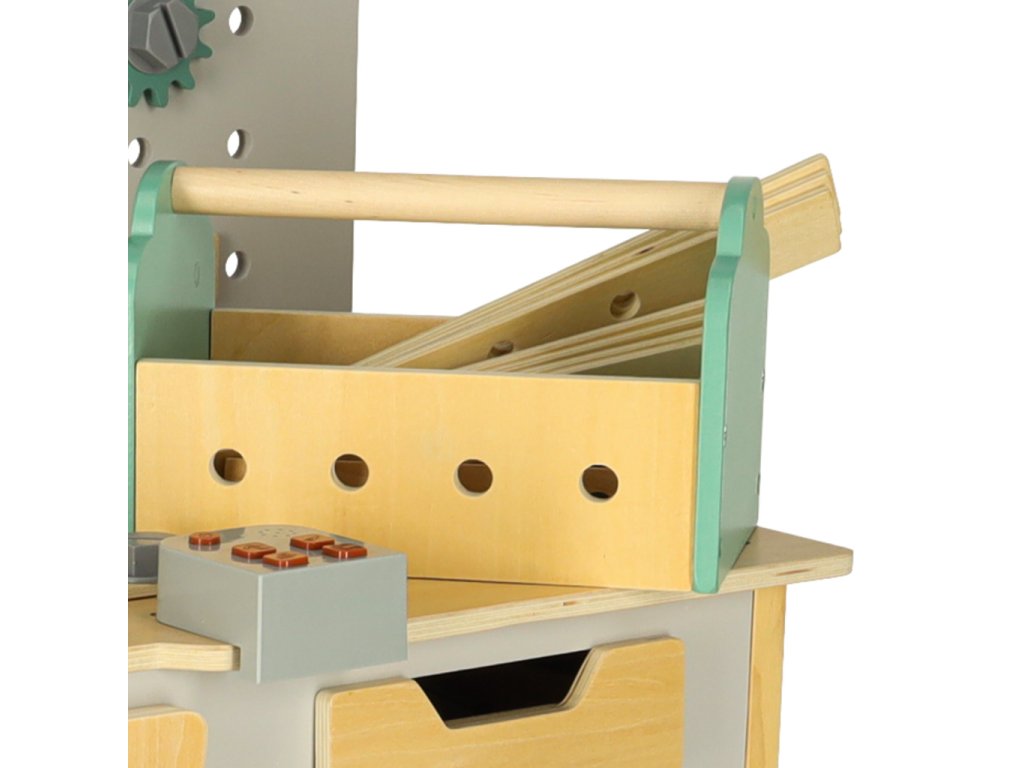 Dielňa malého majstra s diaľkovým ovládaním vydávajúcim zvuky je ideálnym miestom na hranie a učenie. V bezpečnom priestore sa batoľa naučí pomenovať a rozlišovať nástroje, ako aj pravidlá práce s nimi.