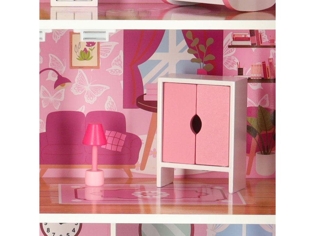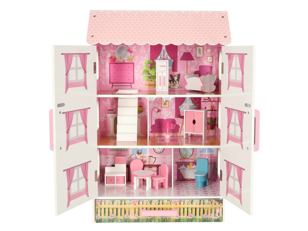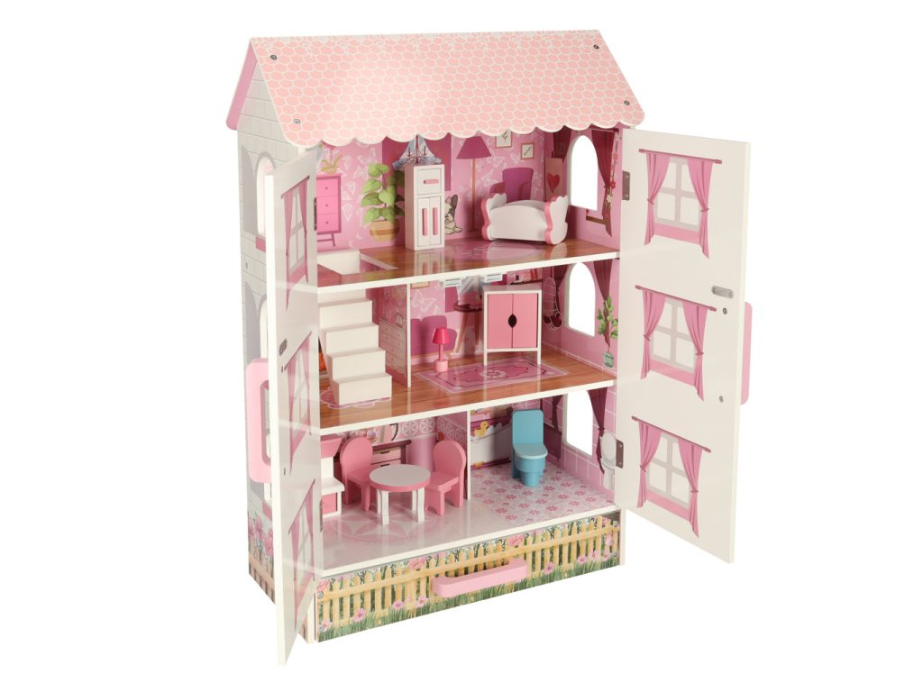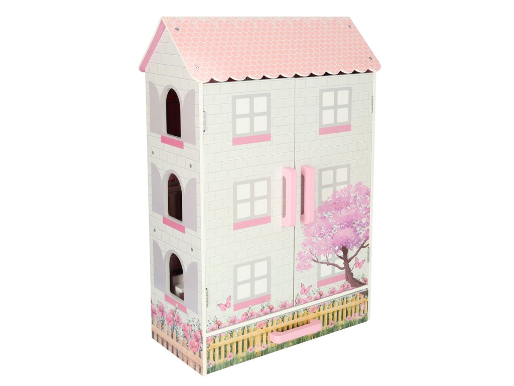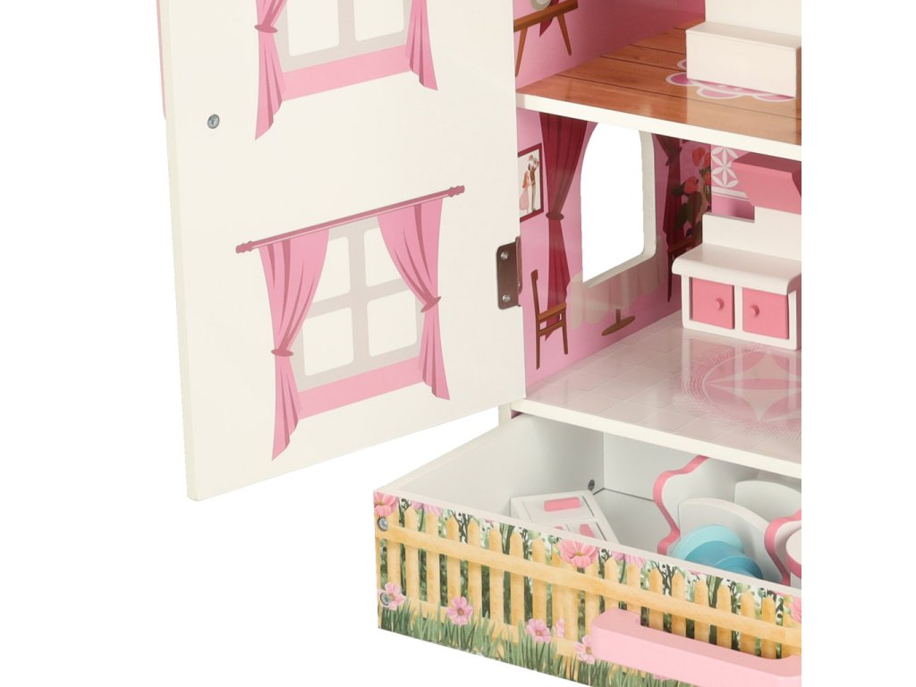 Otvárací domček pre bábiky v pôvabnom štýle bude nielen miestom na kreatívnu hru, ale aj ozdobou detskej izby. Domček má tri poschodia s kuchyňou, kúpeľňou, spálňou, obývačkou a schodiskom. Dvere a zásuvky uzamykateľné na magnet uľahčujú udržiavanie poriadku v izbe - hračky vo vnútri po hraní jednoducho upratajte.