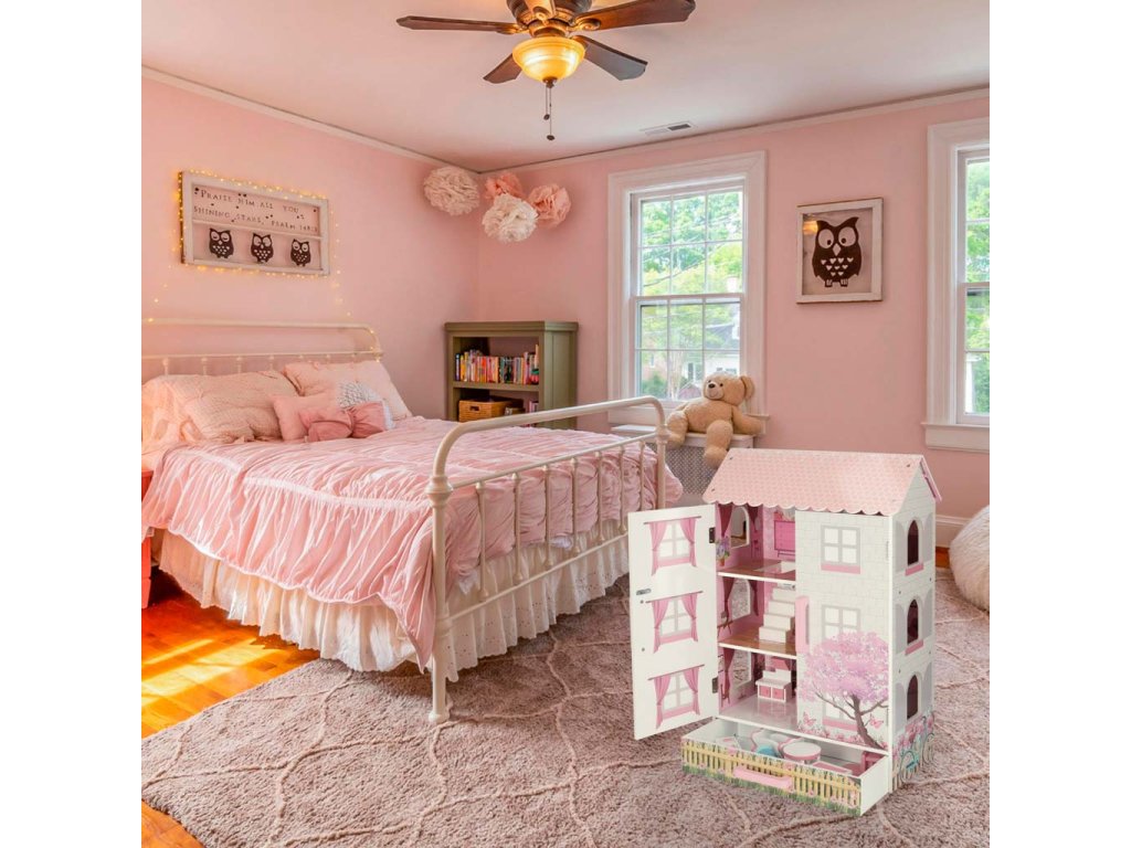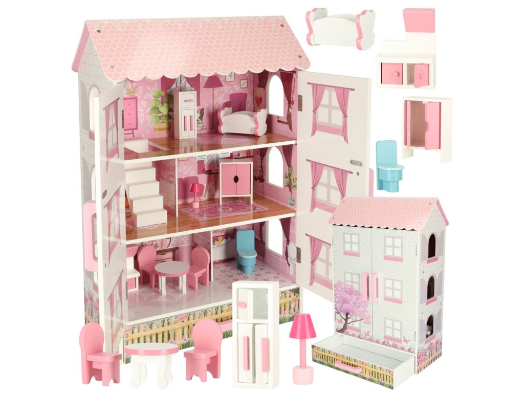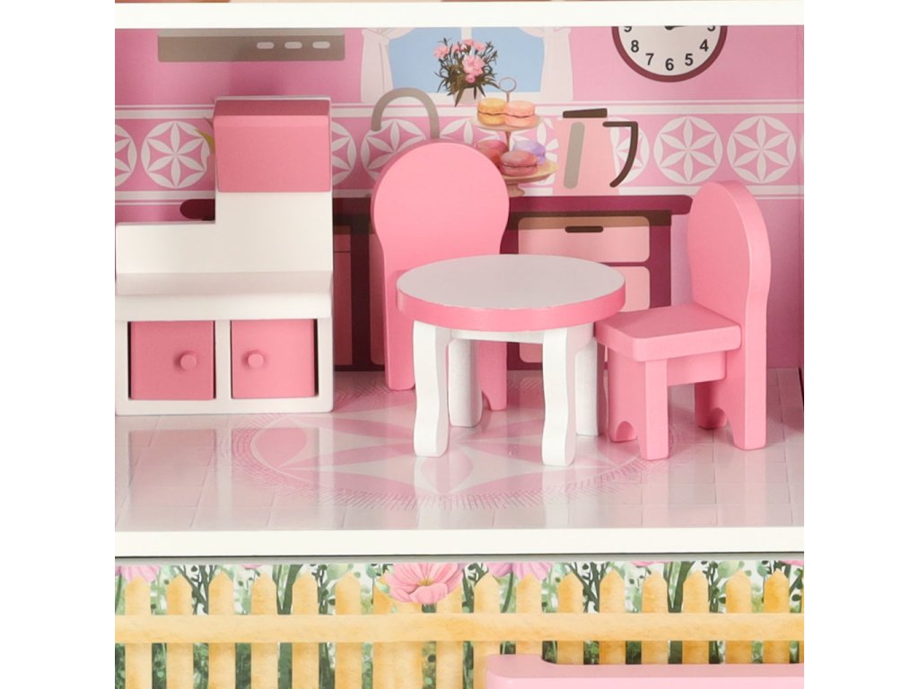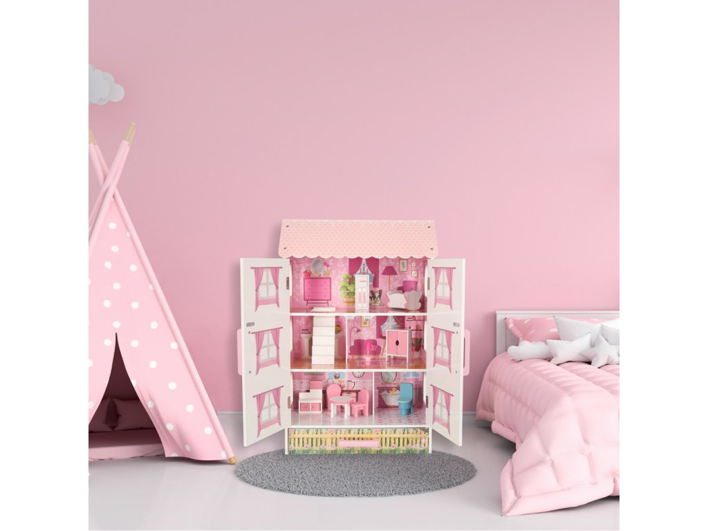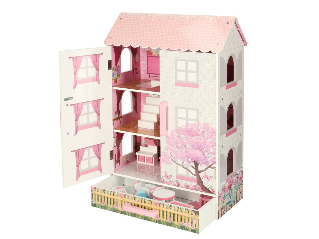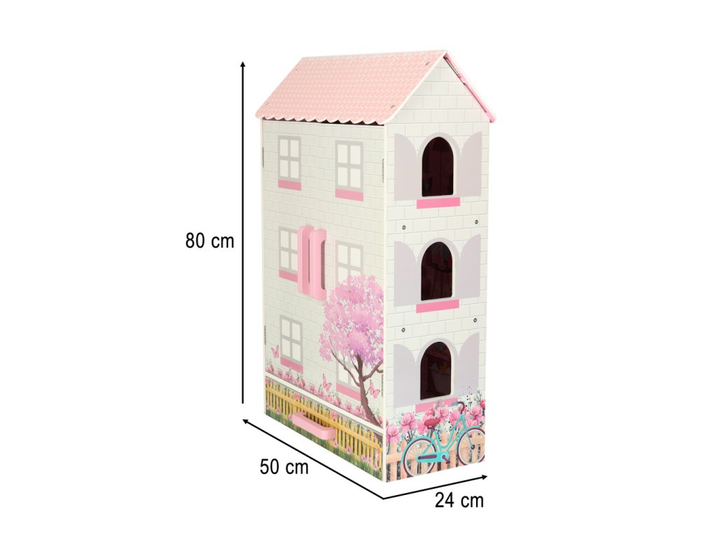 Otvárací domček pre bábiky v pôvabnom štýle bude nielen miestom na kreatívnu hru, ale aj ozdobou detskej izby. Domček má tri poschodia s kuchyňou, kúpeľňou, spálňou, obývačkou a schodiskom. Dvere a zásuvky uzamykateľné na magnet uľahčujú udržiavanie poriadku v izbe - hračky vo vnútri po hraní jednoducho upratajte.