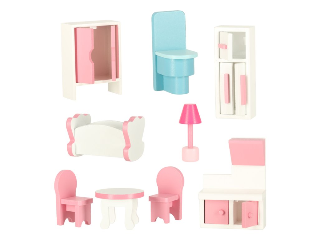 Domček je vybavený 9 miniatúrnymi kusmi nábytku v pastelových farbách. Nábytok môžete ľubovoľne rozmiestniť a do domčeka môžete hneď zaviesť aj plyšové medvedíky, bábiky alebo malé figúrky. Domček na hranie alebo fotenie domčeka pre bábiky pomôže deťom rozvíjať ich kreativitu a predstavivosť.