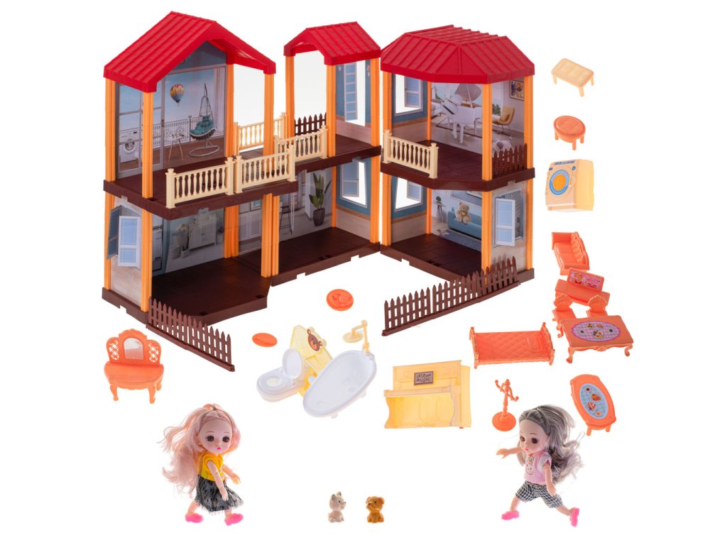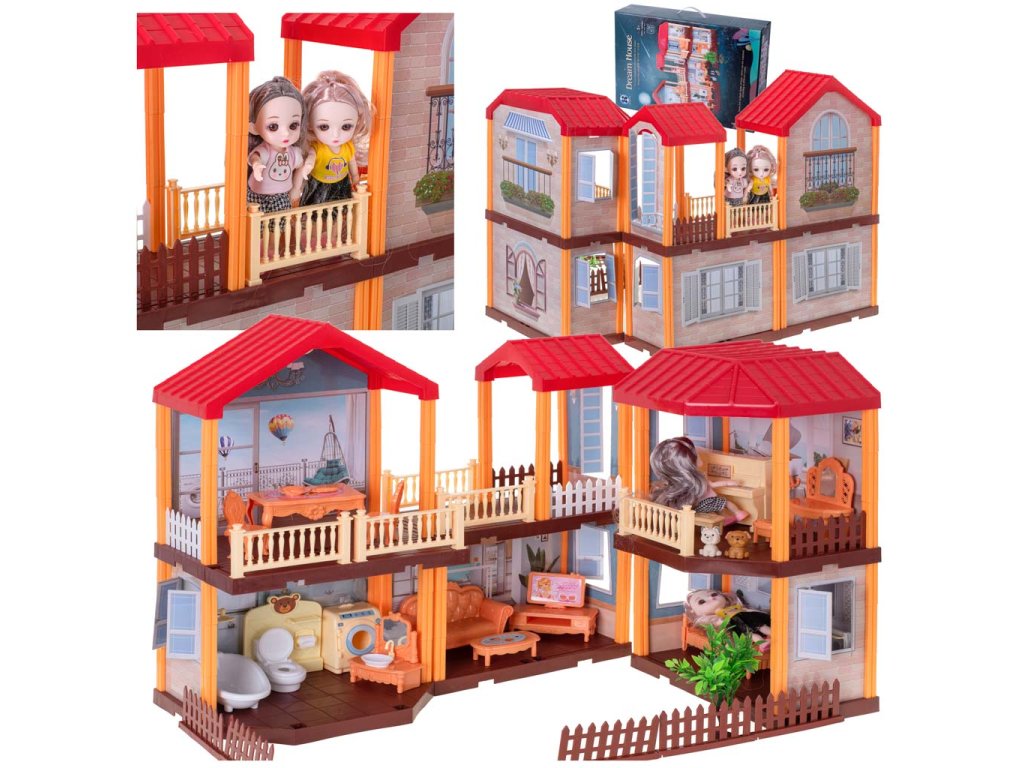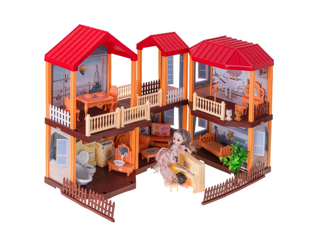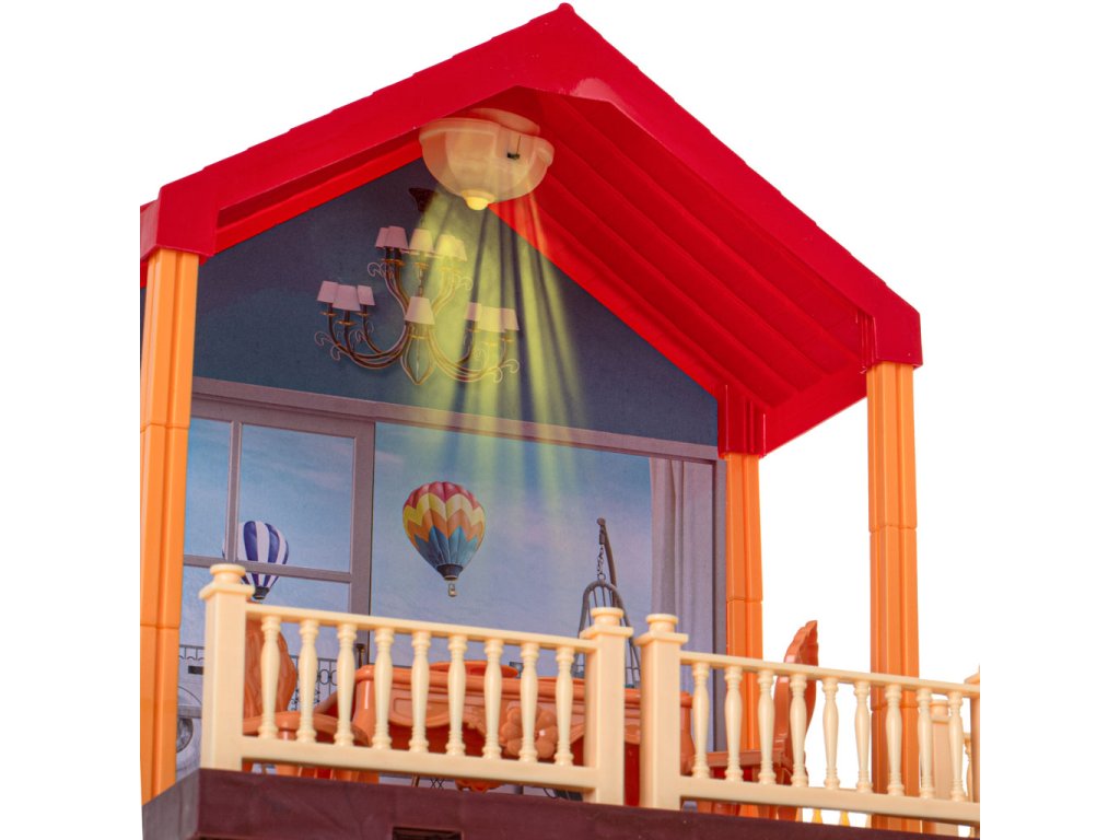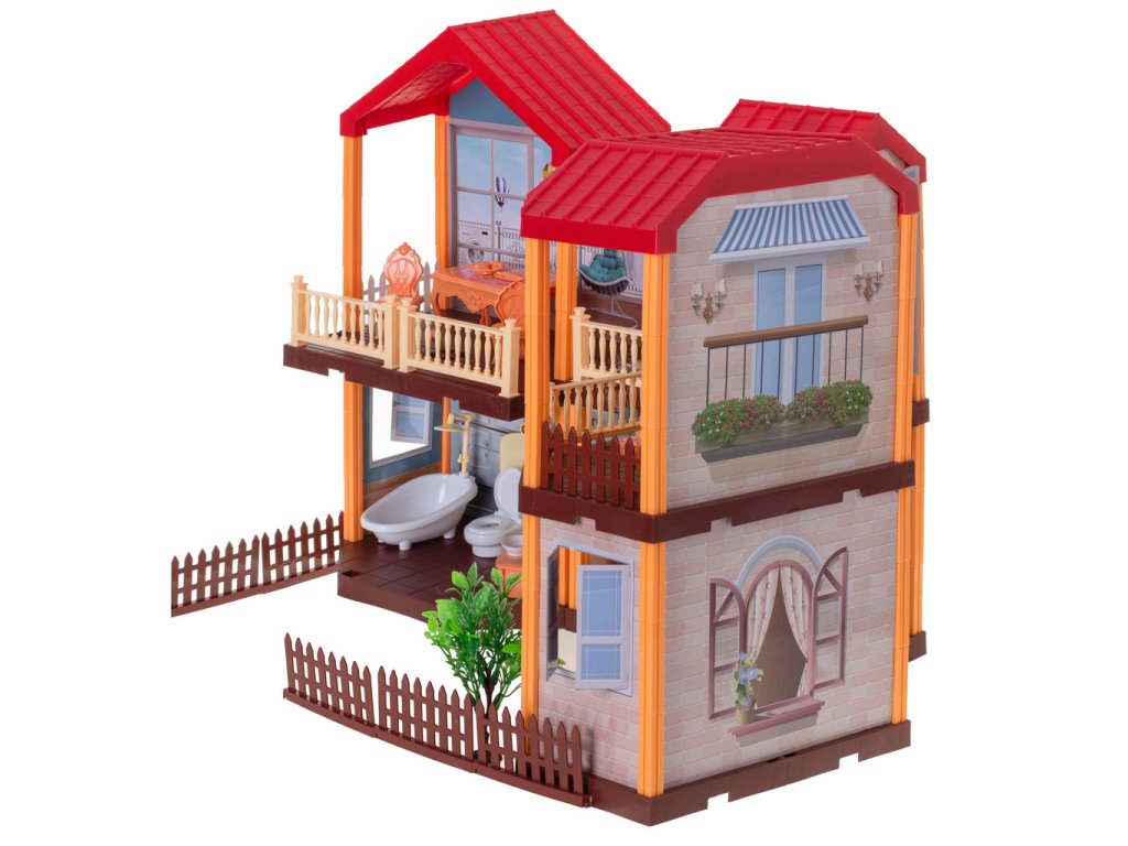 Predstavujeme čarovnú vilu pre bábiky s červenou strechou a osvetlením, v ktorej budú vaše bábiky konečne bývať „vo vlastnom“. Domček ponúka veľa izieb, terasu aj záhradu – ideálne miesto na nekonečné príbehy a hry.