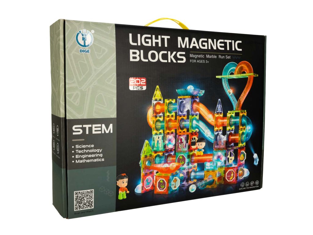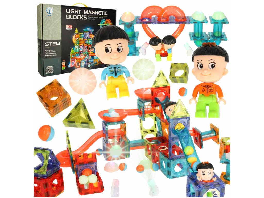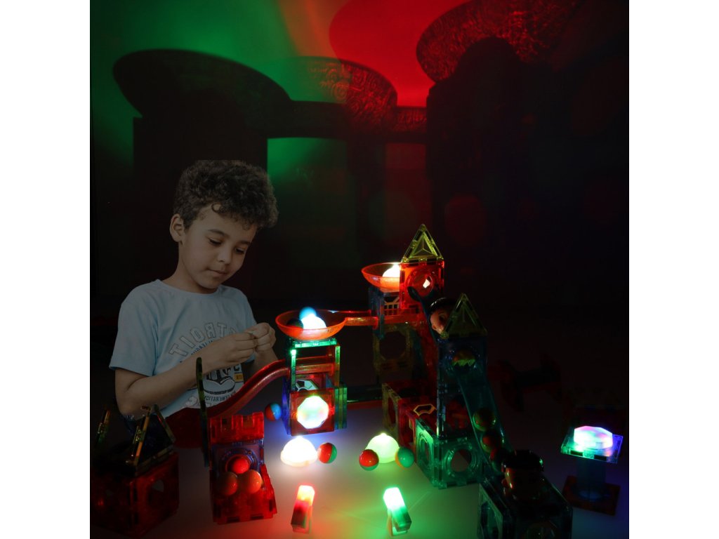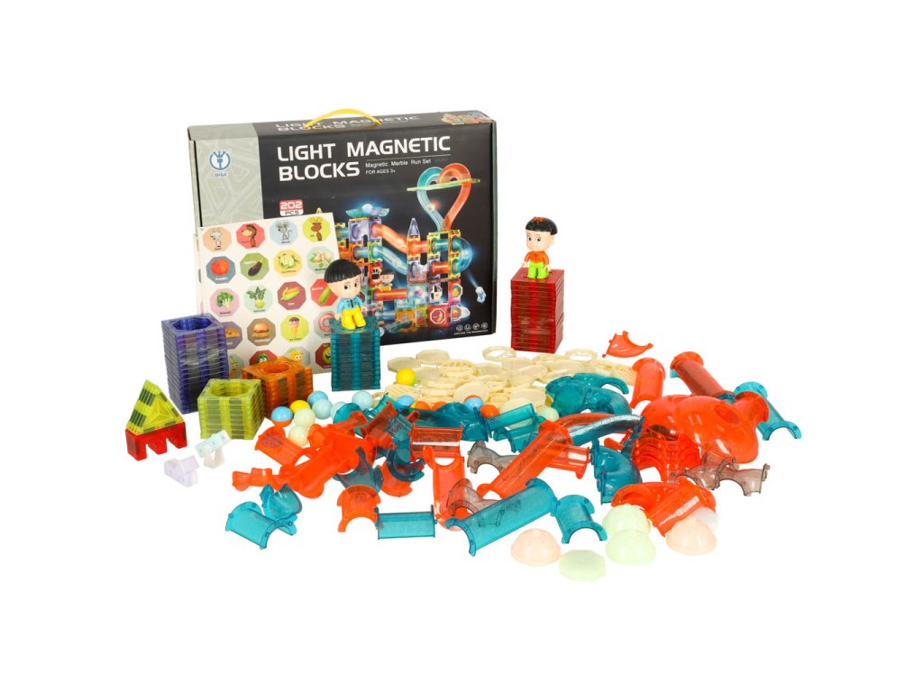 MAGNETICKÉ BLOKY MRAMOROVÁ GUĽÔČKOVÁ DRÁHA SVIETIACE PRVKY 202