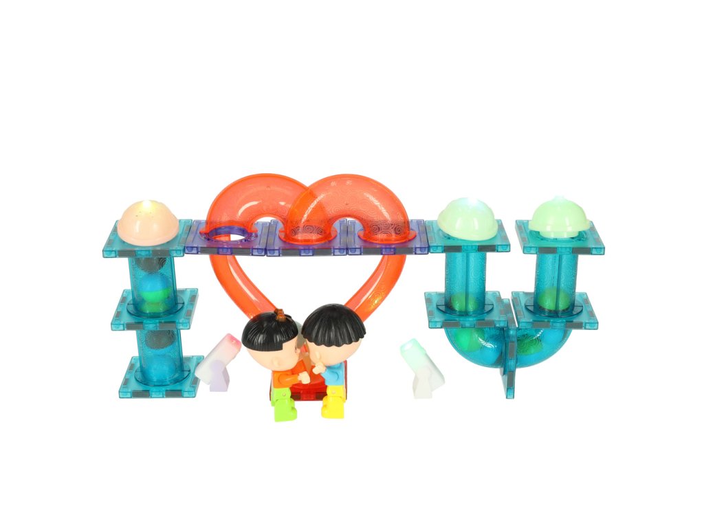 Niektoré z tehličiek sú spojené magnetmi, vďaka čomu je celá stavba zábavnejšia.Vďaka čomu je celá stavba pevnejšia. Zvyšné tehličky, ktoré slúžia ako tunely, sa umiestňujú "stlačením".