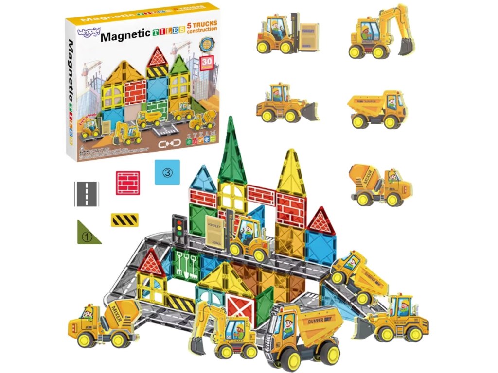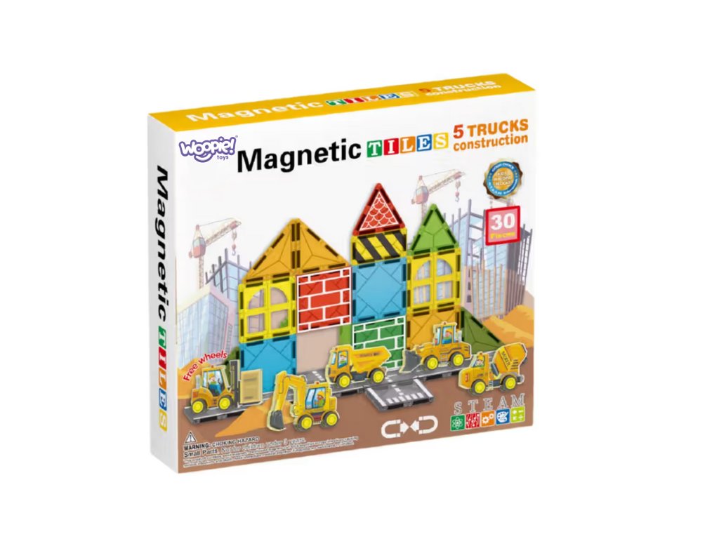 Sada magnetických kociek so stavebnými vozidlami od značkyWoopie odkazykreativitu s fascinujúcim svetom stavebníctva. Magnetické prvky umožňujú deťomvytvárať stabilné, farebné konštrukcie a realistické vozidlá (s kolieskami s voľným chodom) podporujú hru na malých inžinierov. Súprava obsahuje30 prvkov s rozmermi 7,5 × 7,5 cm - ideálne pre detské ruky. Výrobok je bezpečný, odolný a ľahko sa skladá, takže hra je rýchla a bez frustrácie. Je to ideálny darček na rozvoj predstavivosti, manuálnych zručností a skupinovej spolupráce.