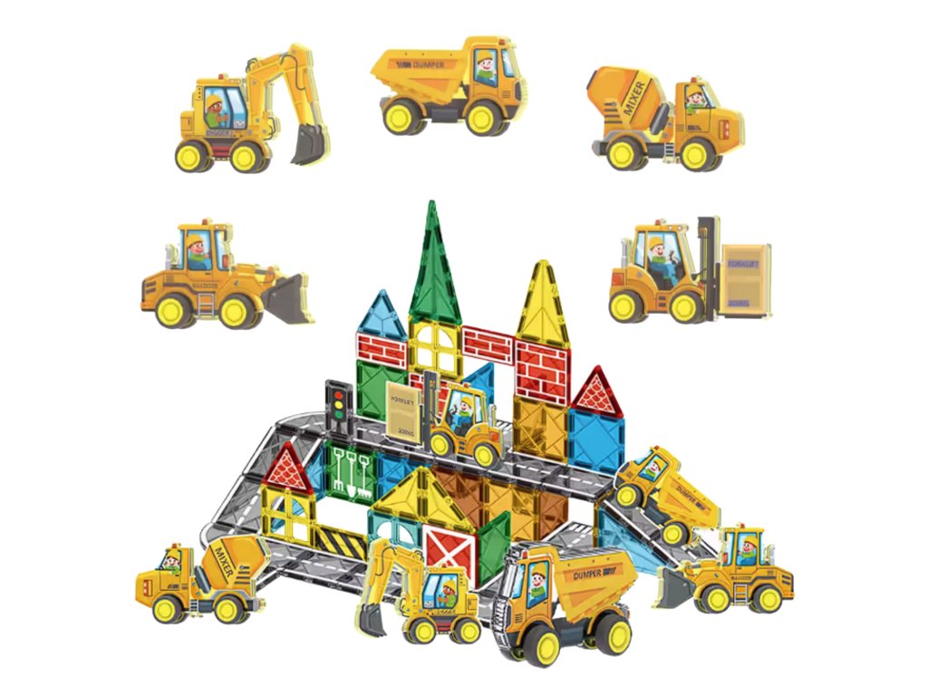 - - Stavebnica s magnetickými blokmi a stavebnými vozidlami