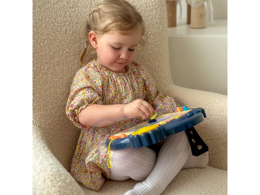 - - zvukové efekty- má 6 multifunkčných tlačidiel:zvukové efekty(7), detské piesne(4), elektronické zvuky(405), anglická abeceda a bubon(3)