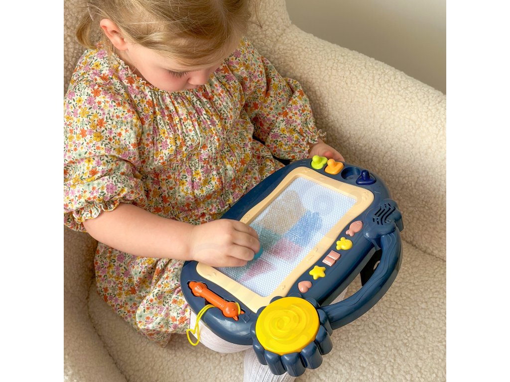 Magnetická Zenerova doskaposkytuje príležitosť kreatívna zábava na dlhú dobu! Rada podporujepísanie ikreslenie. Kreslenie umožnístlmiť iupokojenie ja Vaše dieťa. Cik-cak vám umožňuje vytvoriťnekonečné množstvo obrázky - Stačí posunúť špeciálny posuvník, kresba zmizne a vy môžete kresliť znova! Sada obsahuje aj praktickúpero aaž 4 pečiatkyčo prispeje k spestreniu práce. Okrem toho5 multifunkčných tlačidiel s viac ako 400 možnosťami zvuku, z toho:zvukové efekty,tanečné piesne pre deti, elektronické zvuky,anglická abeceda abubon. Rada mápohodlná rukoväťtakže si ho vaše dieťa môže vziať kamkoľvek a má možnosťzobrazenie nôhčo vášmu dieťaťu uľahčí písanie pri stole. Hrot noža bude rozvíjať dieťamanuálne zručnosti,predstavy,kreativita a poskytne príležitosťvývoj umelecké stránky dieťa!