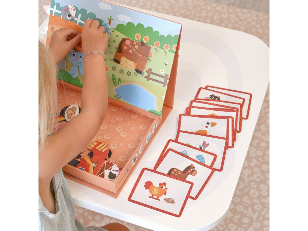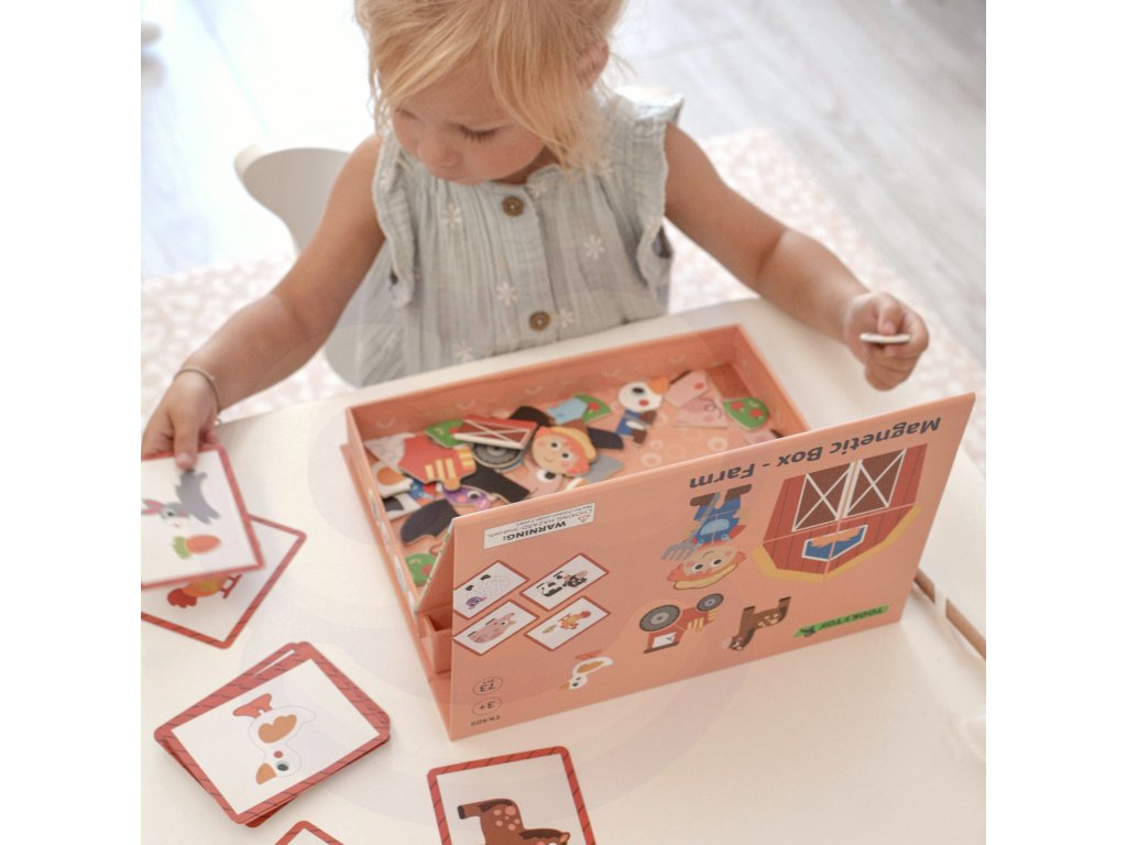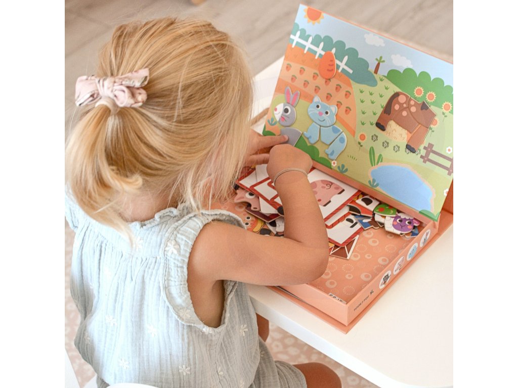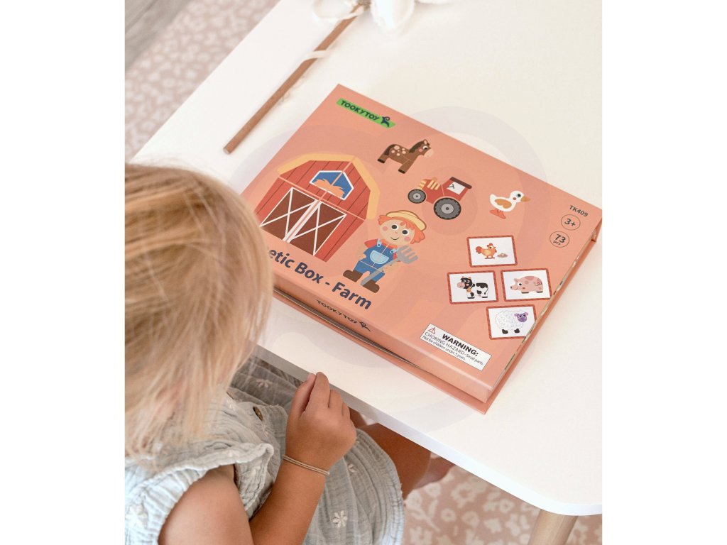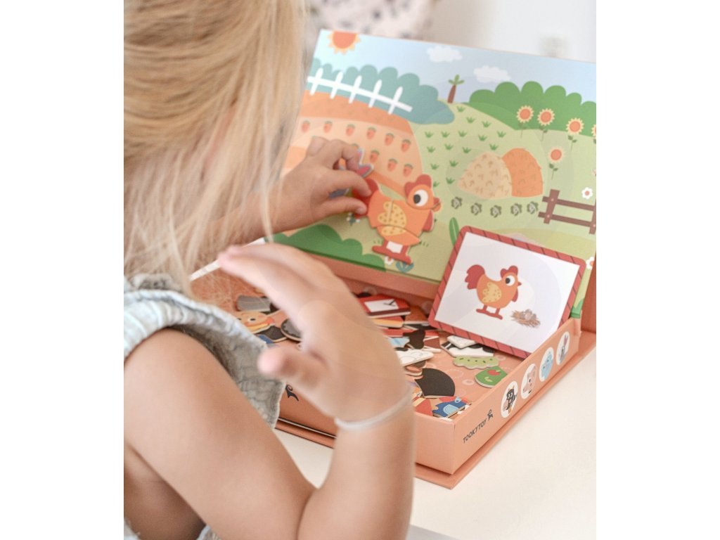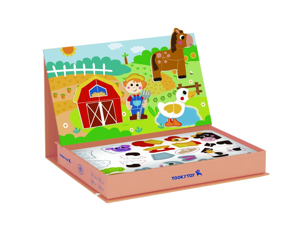 Magnetická farma Puzzle Značka Tooky Toy zavedie deti do sveta zábavnej farmy. Bohatá grafika, množstvo magnetických dielikov a možnosť vytvárať vlastné scény alebo usporiadať dieliky podľa 12 priložených tabuliek. Magnetické puzzle zaručujú skvelú zábavu a učenie prostredníctvom kreativity. Hra s puzzle pomáha batoľatám rozvíjať ich motorické zručnosti, predstavivosť a rozprávačské schopnosti. Vďaka praktickej uzatvárateľnej krabici je sada vhodná na doma aj na cesty.