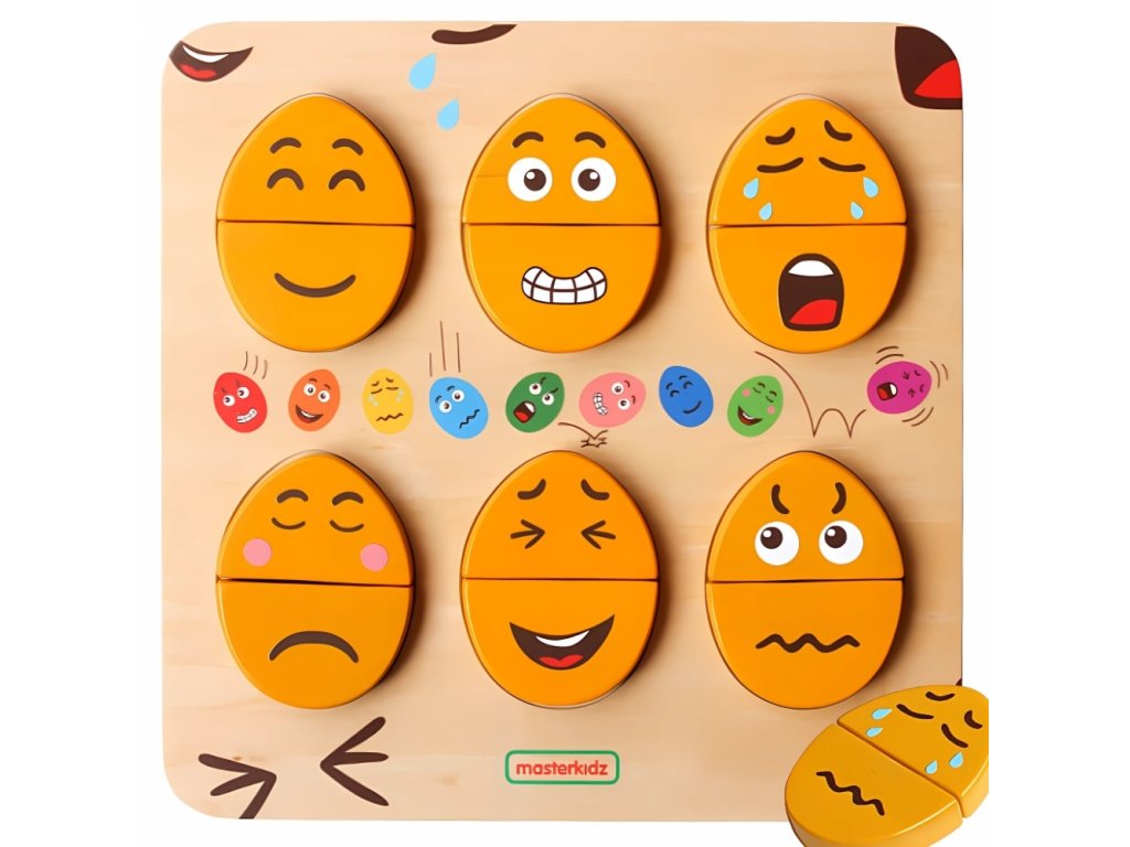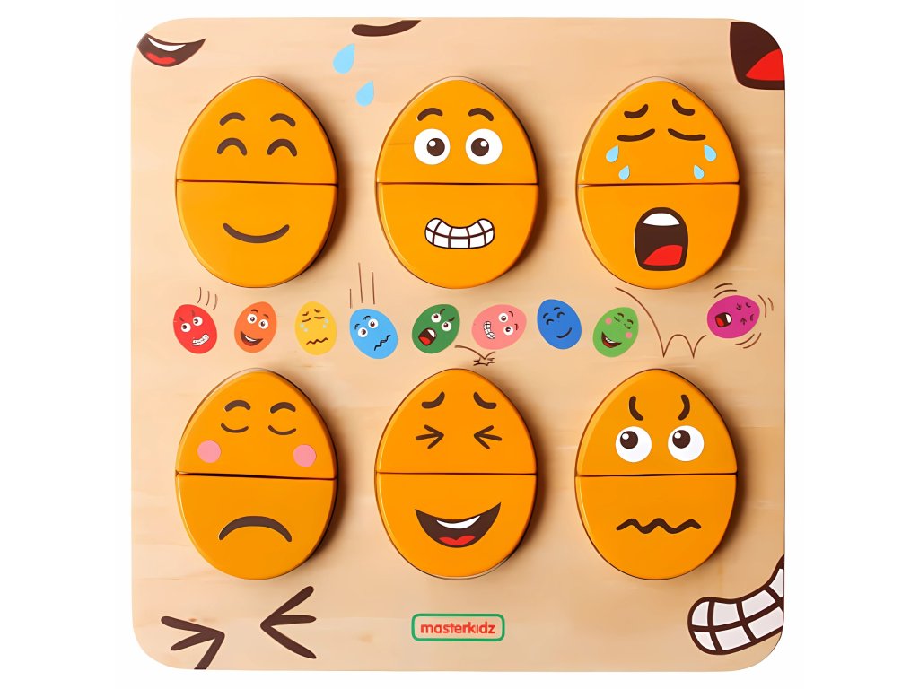 MASTERKIDZ Doska na emocionálne učenie Drevené vajíčka Čo je to humor? Montessori